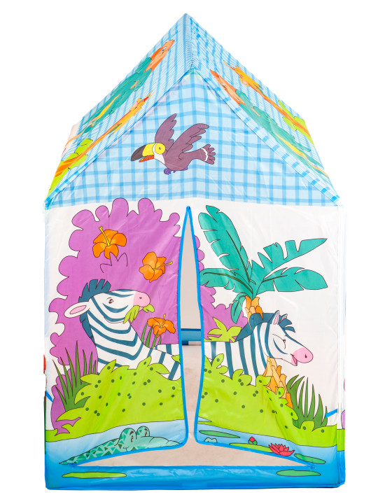 Namiot daje możliwość niezapomnianej zabawy zarówno w domu, jak i na zewnątrz. Będzie doskonałą kryjówką dla dziecka! Żywa kolorystyka i barwne obrazki zainteresują każdego malucha i sprawią, że zabawa będzie jeszcze ciekawsza. Produkt kształtem przypomina domek – posiada daszek. Namiot jest praktyczny oraz łatwy w montażu. Dzięki lekkiemu stelażowi łatwo przenieść go z miejsca na miejsce.