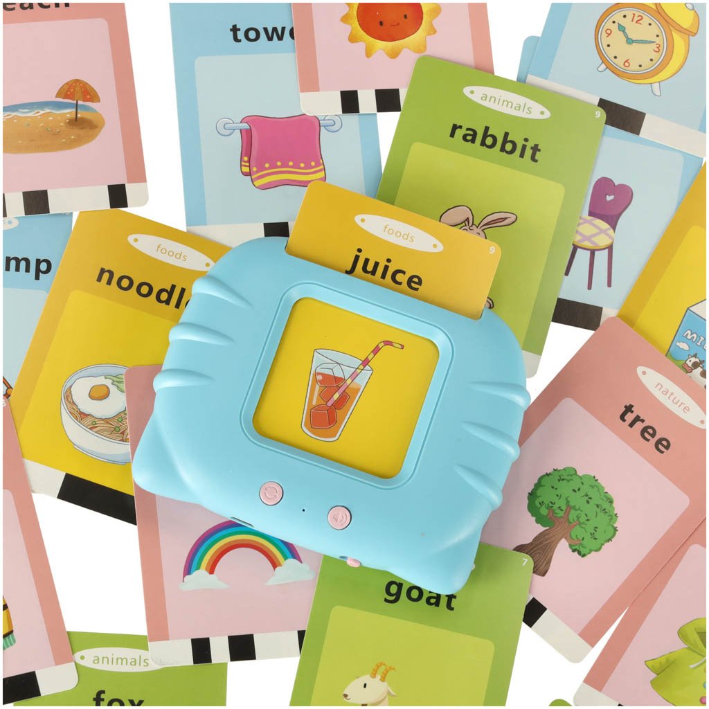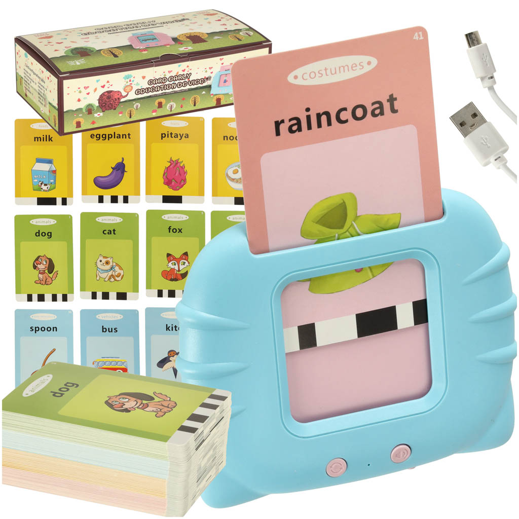 Nauka języka angielskiego czytnik kart do nauki słówek fiszki niebieski