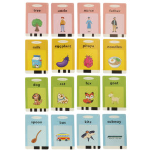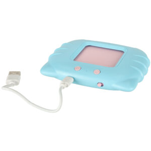 Niebieski czytnik kart edukacyjnych do nauki języka angielskiego. Produkt gra słowo z karty, co pozwala na naukę nowych słówek i ich wymowy. Ilość kart: 112 (dwustronne). Zasilanie: akumulator 300 mAh. Czas działania: 4-5 godzin. Wym: 10,7 x 9 x 2,1 cm.