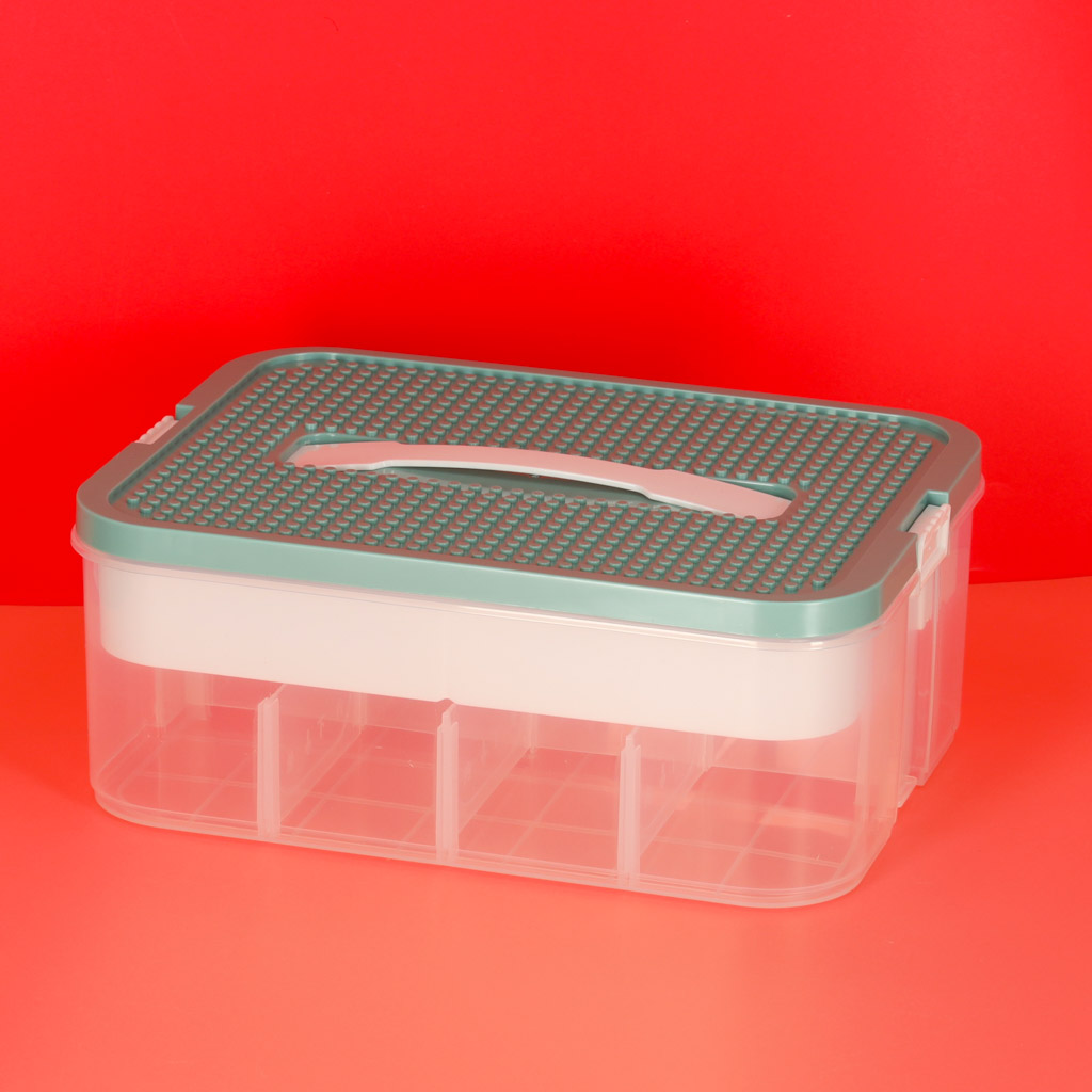 Organizer pudełko pojemnik na klocki zabawki drobiazgi z pokrywą przegródkami