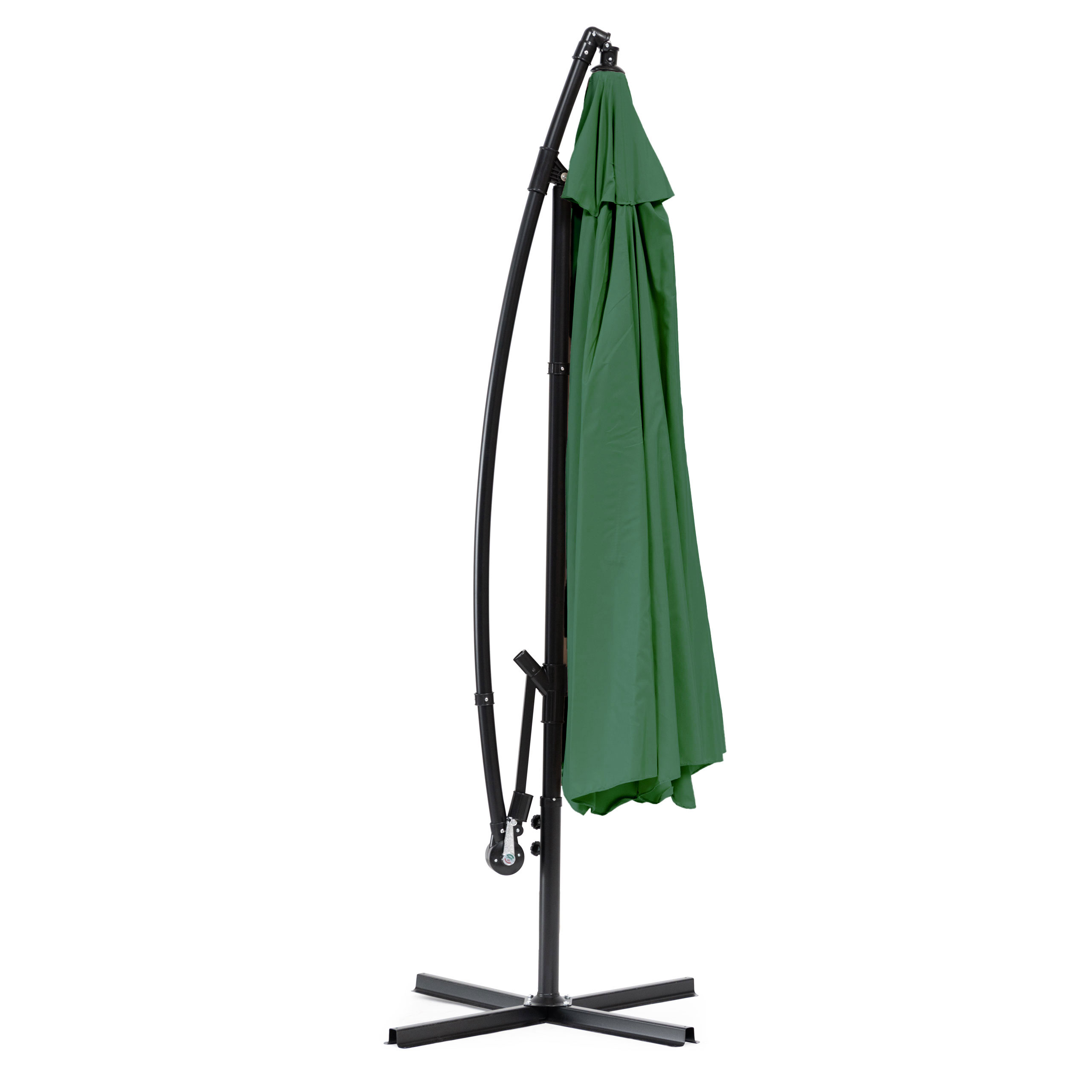 Parasol opiera się krzyżowym, metalowym stelażu, który należy przymocować do podłoża korzystając ze specjalnych otworów. Jeśli chcesz ustawić parasol na miękkim podłożu, jak np. trawnik, możesz użyć uniwersalnych obciążeń do parasoli ogrodowych i zablokować nim stelaż.