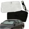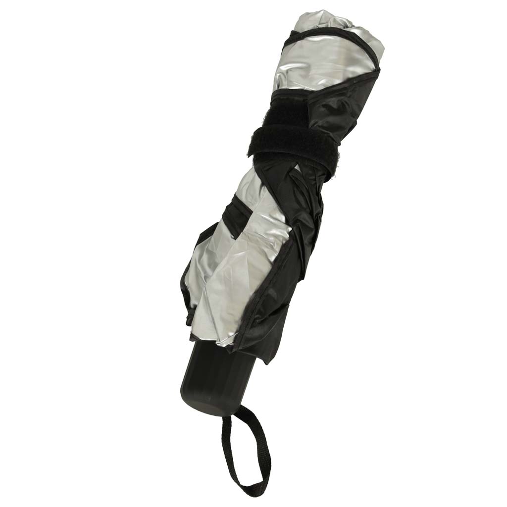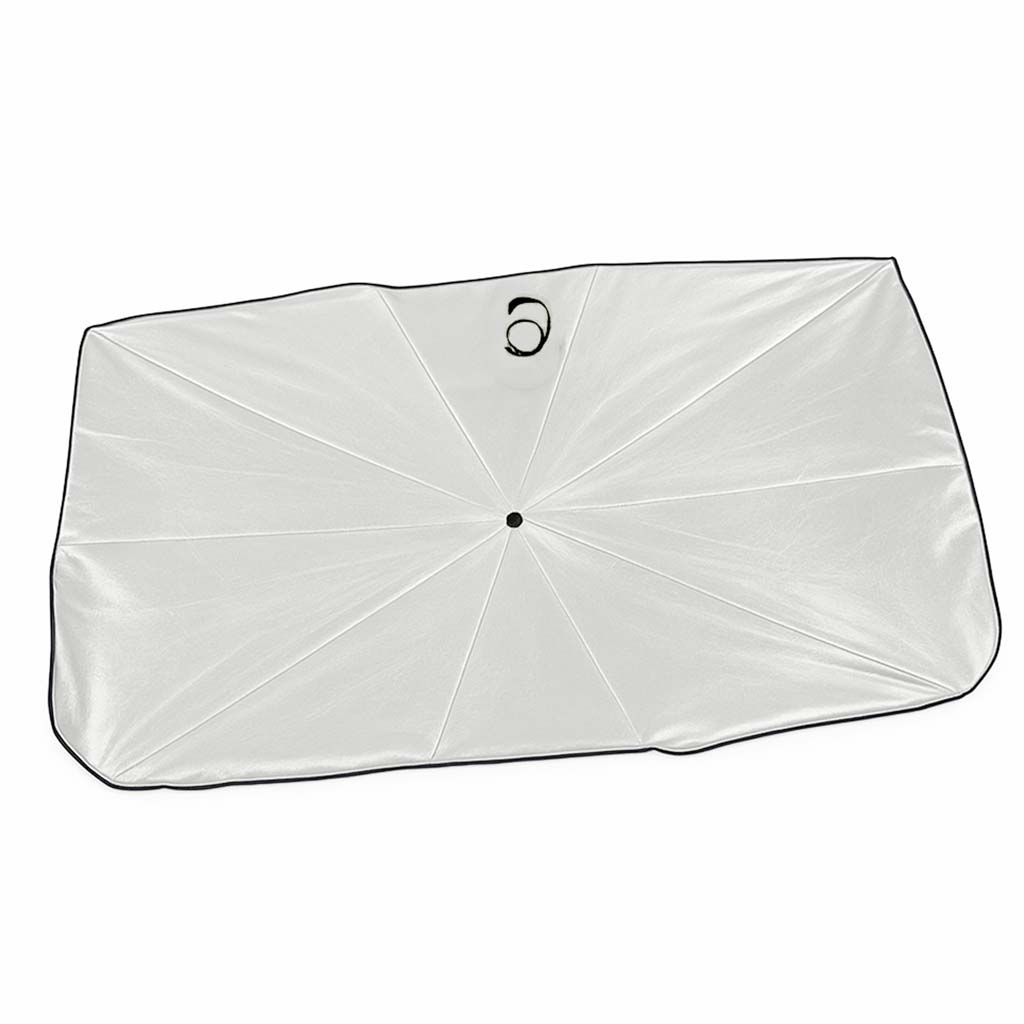 Praktyczny parasol przeciwsłoneczny do samochodu na przednią szybę. Zapobiegnie nagrzewaniu się wnętrza samochodu podczas największych upałów. Łatwa konstrukcja, którą składa się jak zwykły parasol. Po złożeniu zajmuje mało miejsca. Wymiary: 65x110cm.