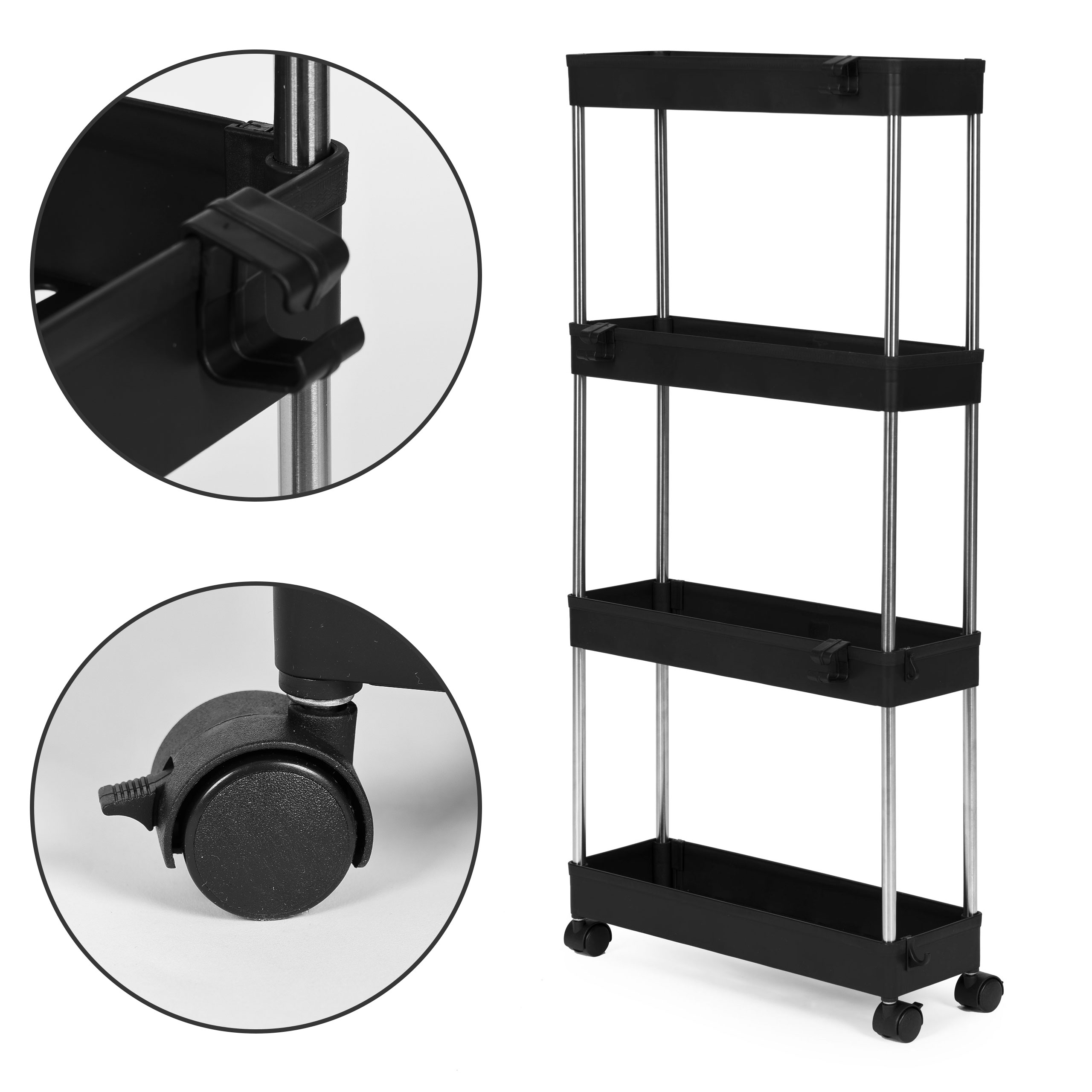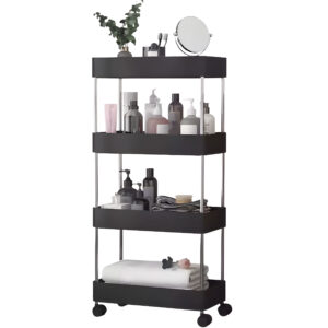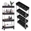 Plastikowy regał łazienkowy z 4 półkami kółka czarny ModernHome