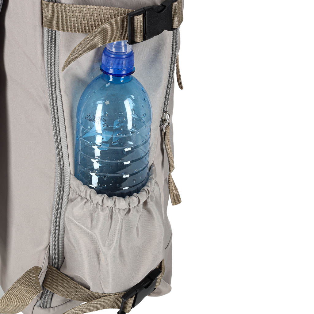 kompleksowe spakowanie plecaka na drogę. Boczne kieszenie na gumce pomieszczą