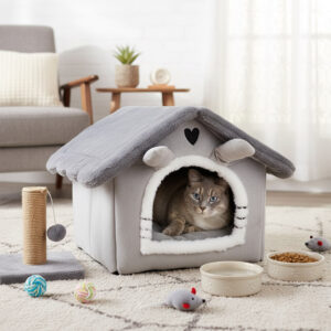 ✅ Pluszowy i przytulny: Miły w dotyku materiał sprawia, że domek jest niezwykle komfortowy dla kota.