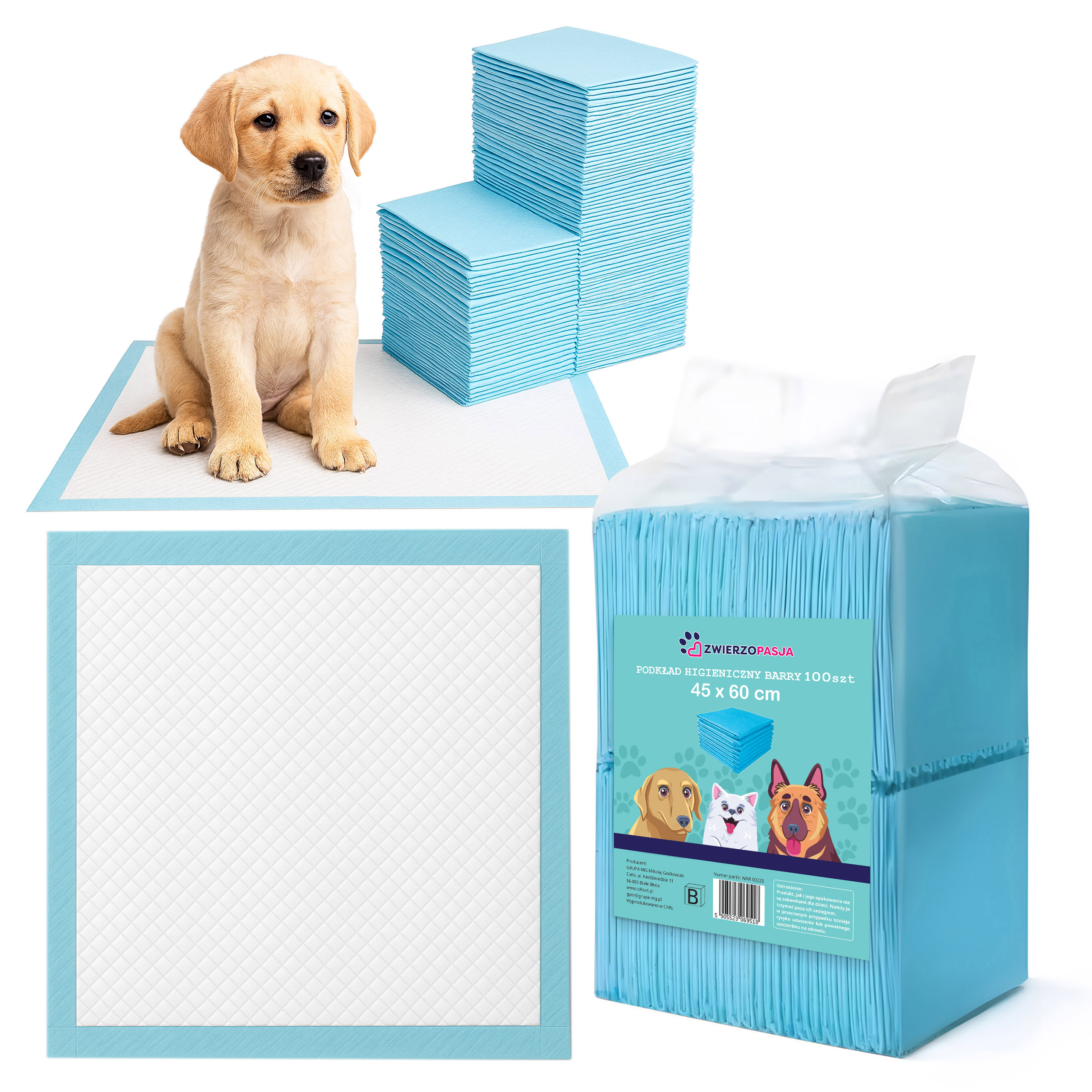 Podkłady higieniczne Barry to praktyczne i niezawodne wsparcie dla każdego opiekuna psa. Ułatwiają utrzymanie czystości w domu, wspomagają naukę higieny u szczeniąt oraz skutecznie chronią podłogi i legowiska przed zabrudzeniami. Dzięki nim Ty i Twój pupil możecie cieszyć się większym komfortem i spokojem na co dzień.