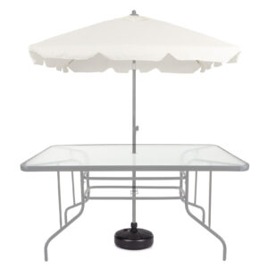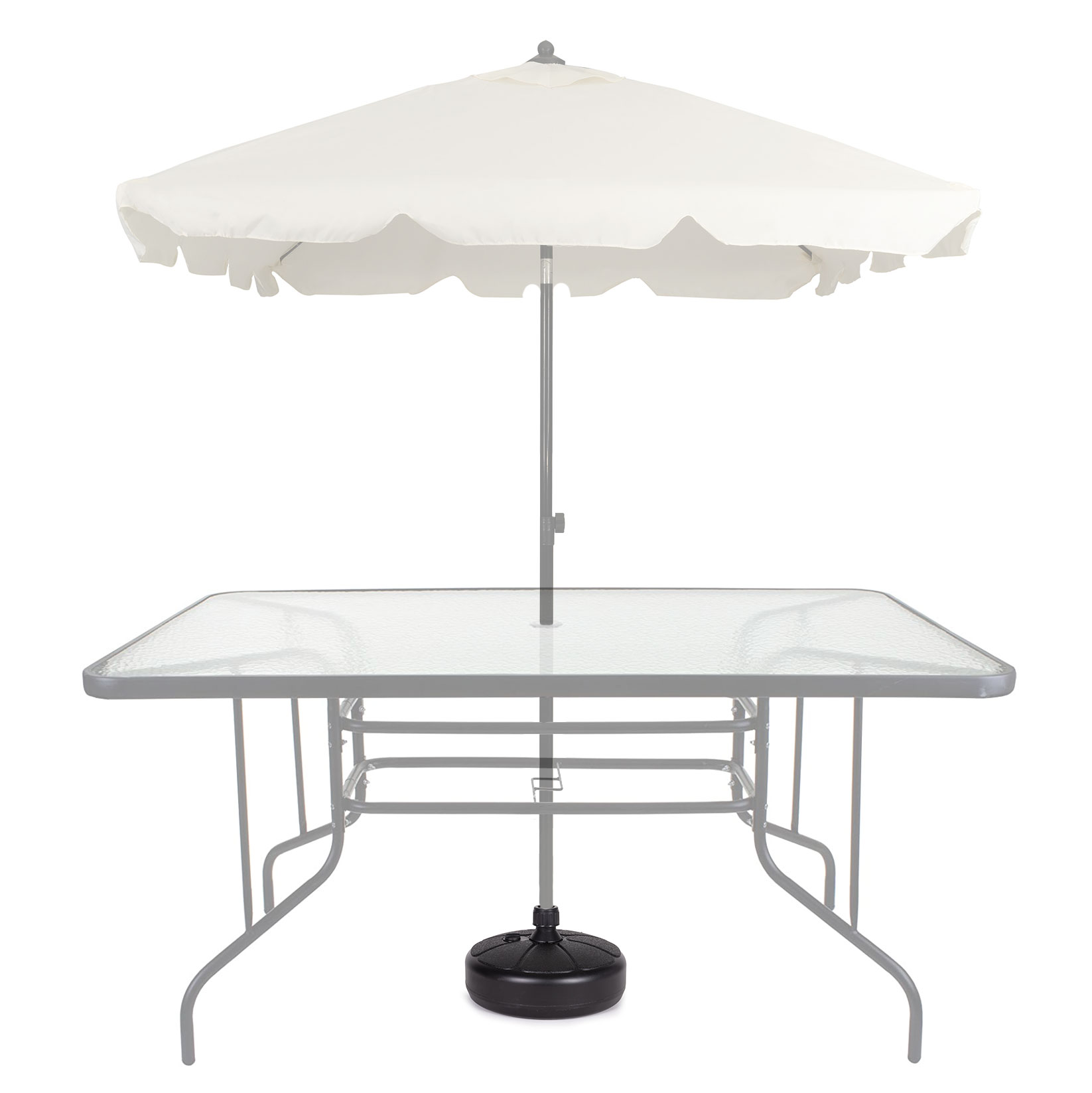 W górnej części podstawy znajduje się odkręcany korek, po jego wykręceniu należy napełnić podstawę wodą. Obciążenie będzie ważyć wtedy ok. 13 kg, co zapewni idealną stabilizację parasola.