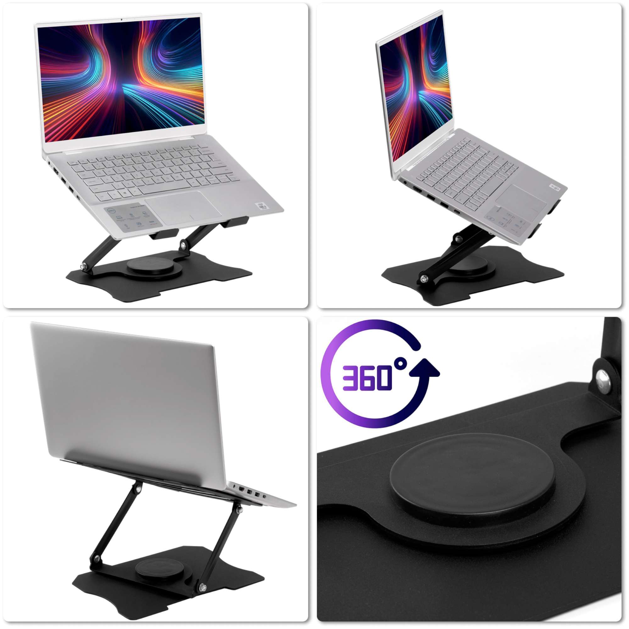 Dodatkowe funkcje: Otwory wentylacyjne, podkładki antypoślizgowe, funkcja obrotowa 360 stopni, regulacja wysokości i kąta pochylenia