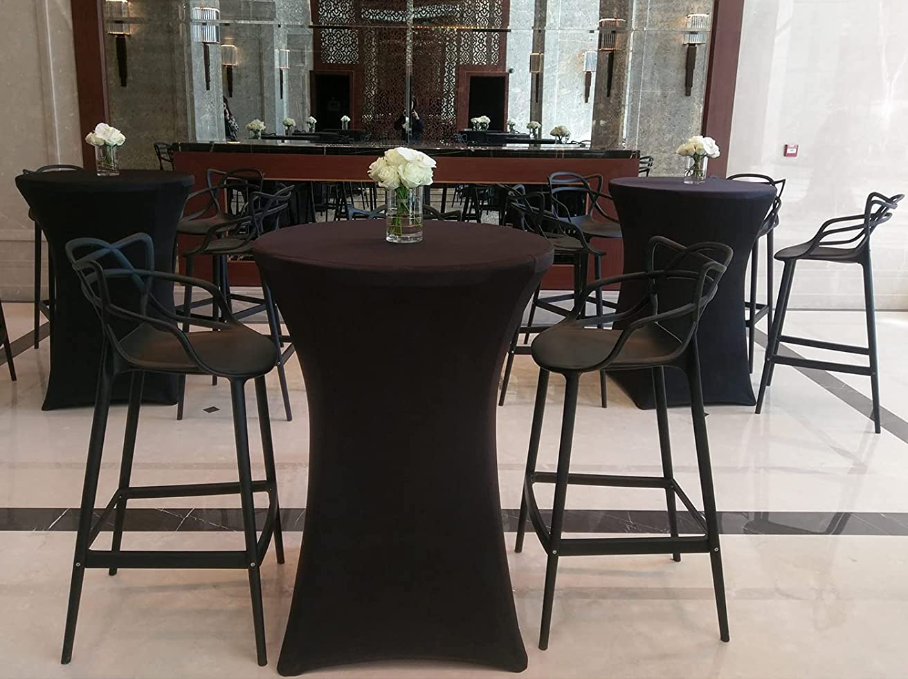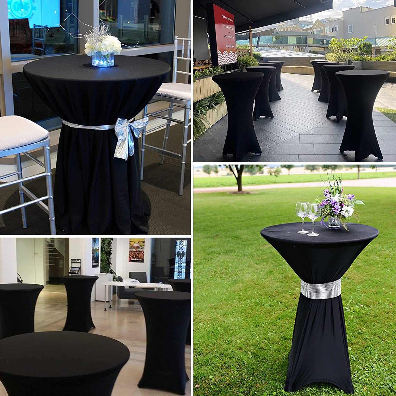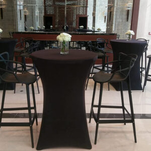 Pokrowiec przeznaczony jest do stolików koktajlowych o szerokości blatu ok. 80 cm i wysokości ok. 110 cm.