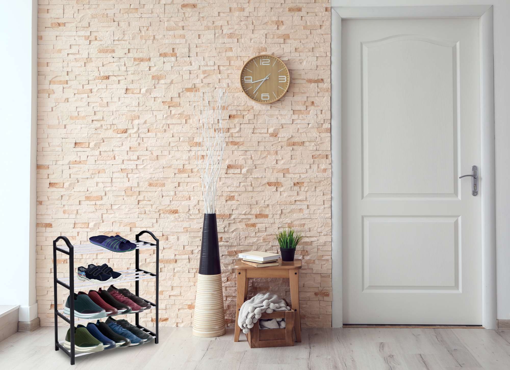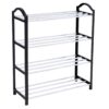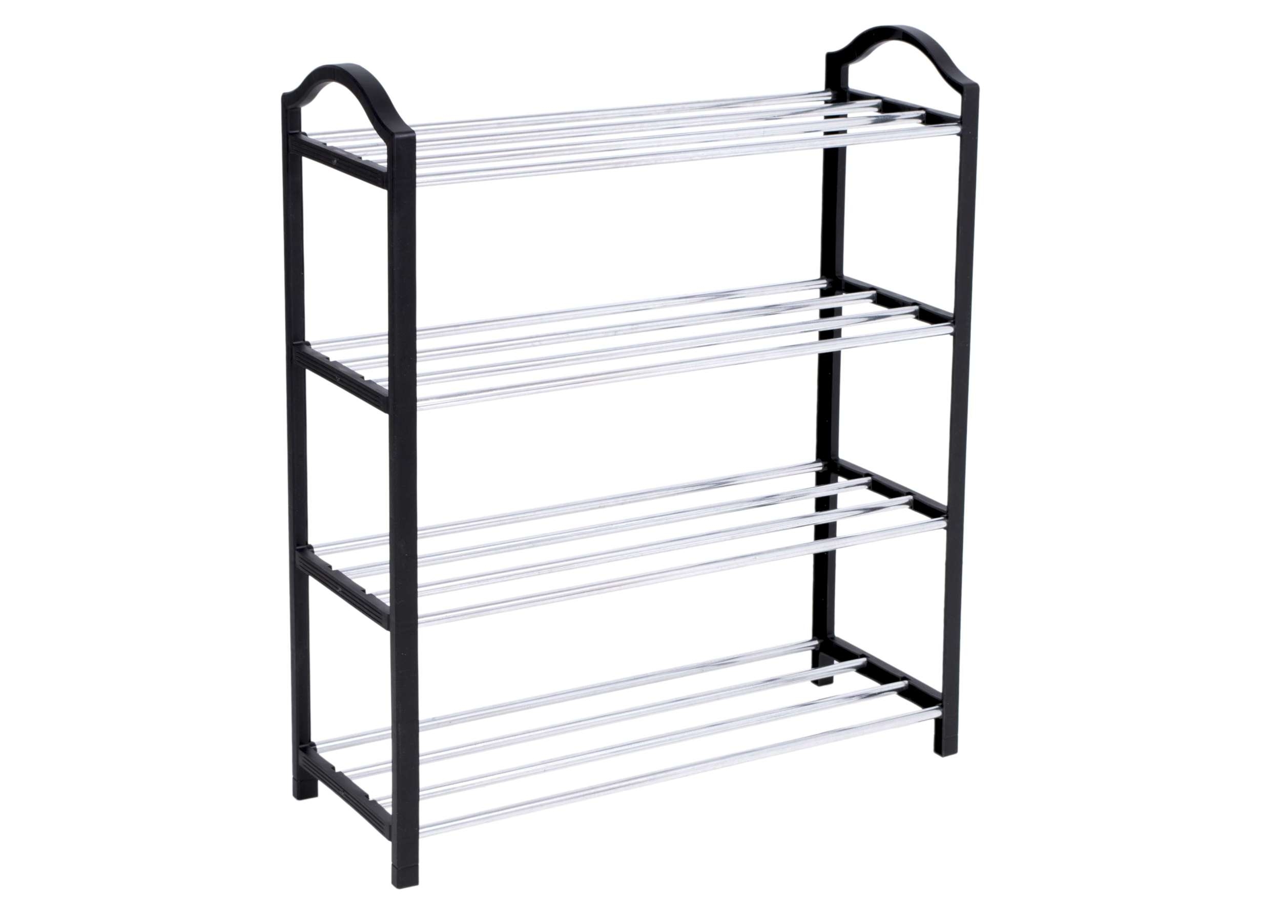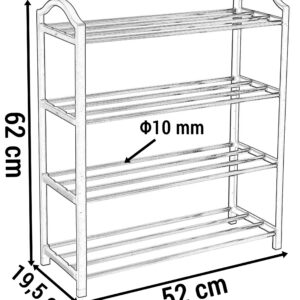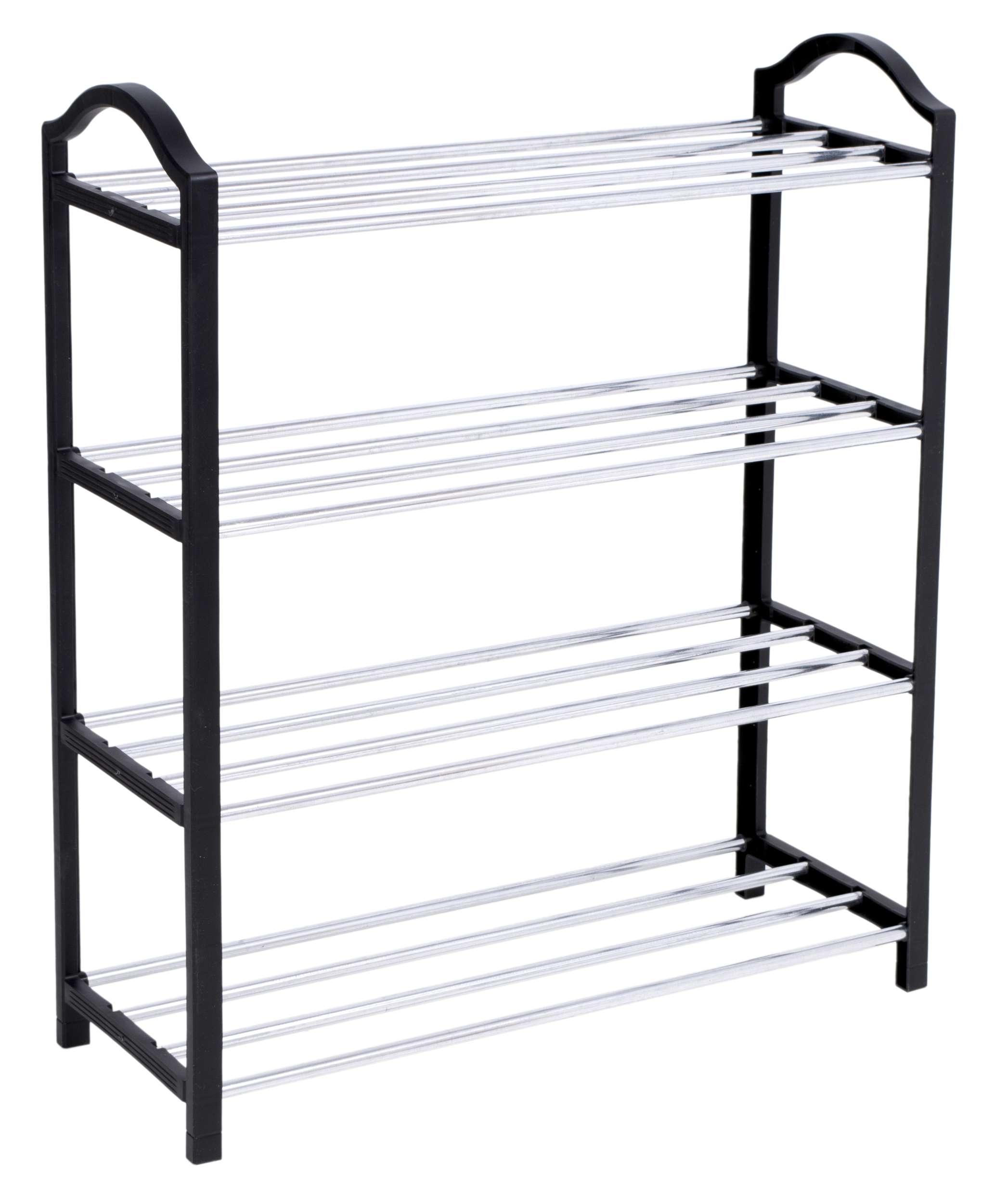 Wykonana z elastycznego tworzywa oraz metalowych rurek półka na buty. Konstrukcja regału jest lekka i wytrzymała. Uniwersalny projekt sprawia, że półka wpasuje się do każdego mieszkania. Cztery poziomy pomieszczą po dwie pary każdy.