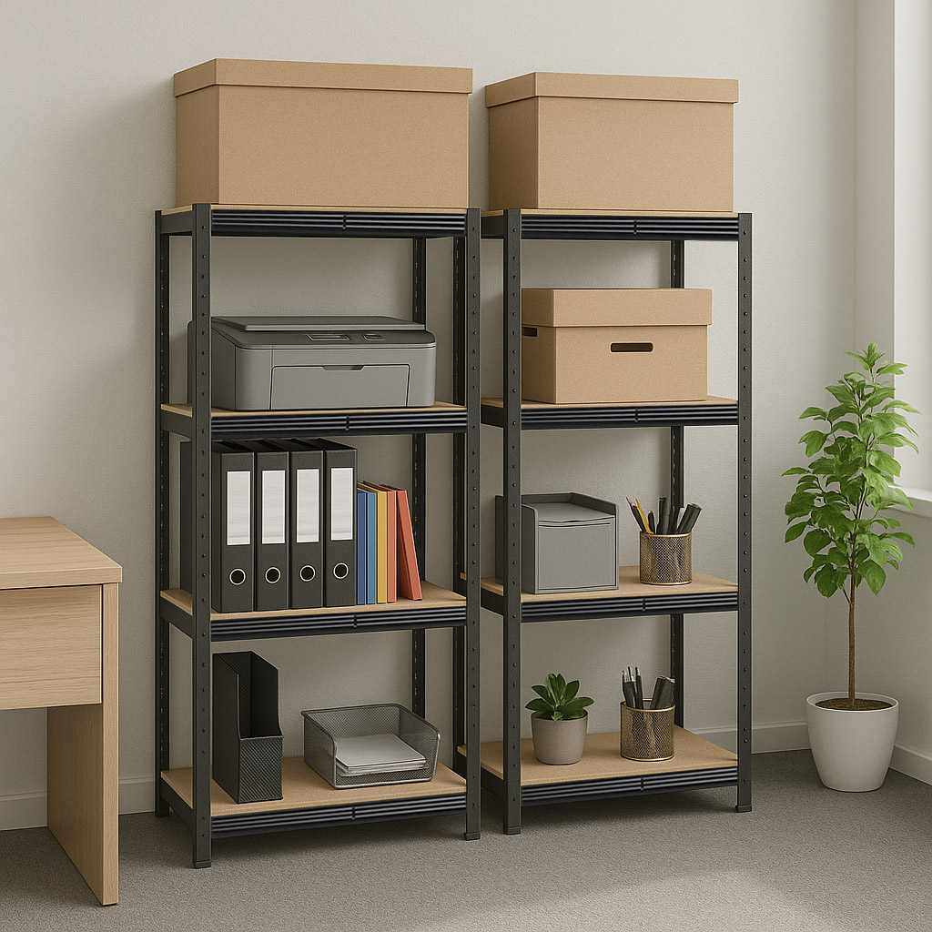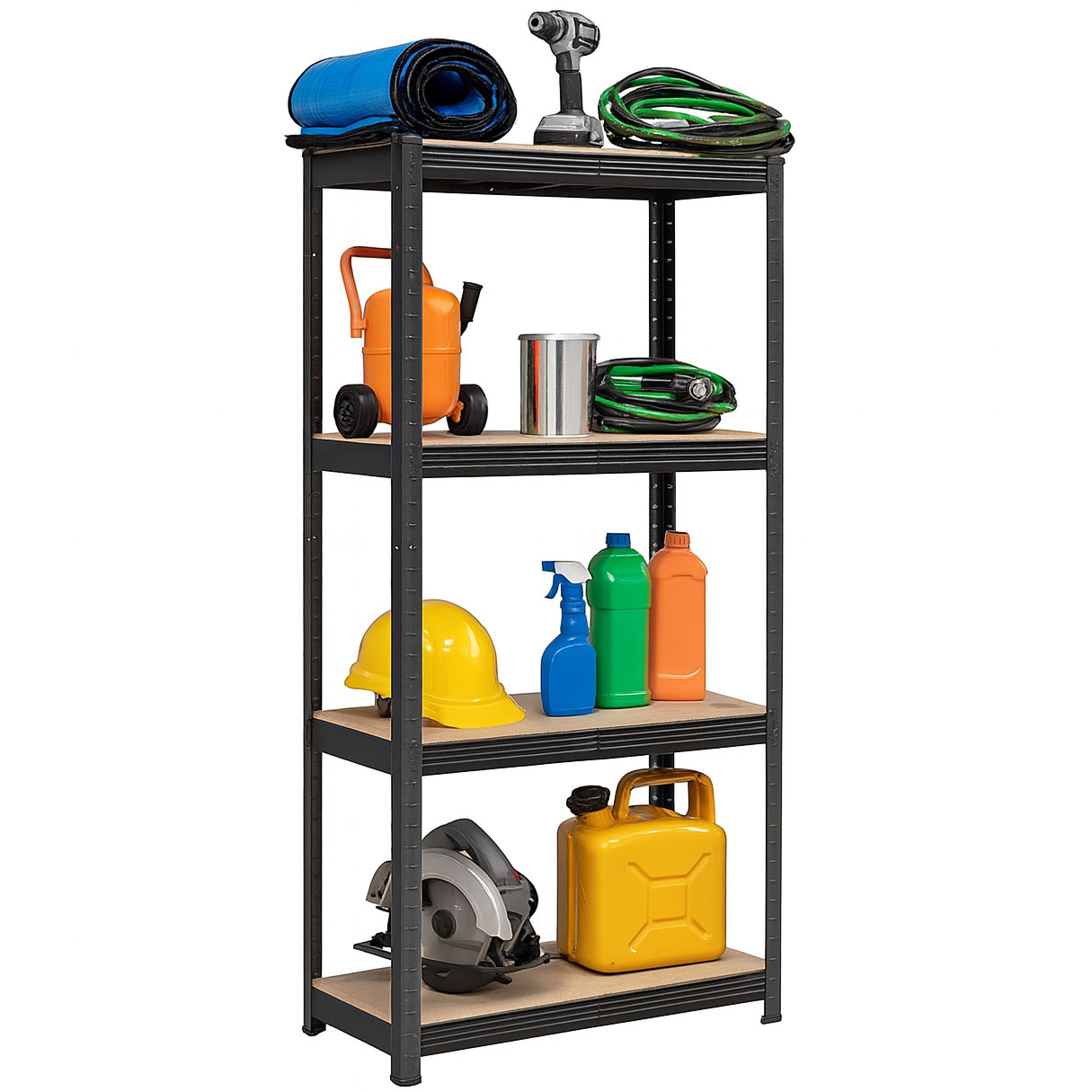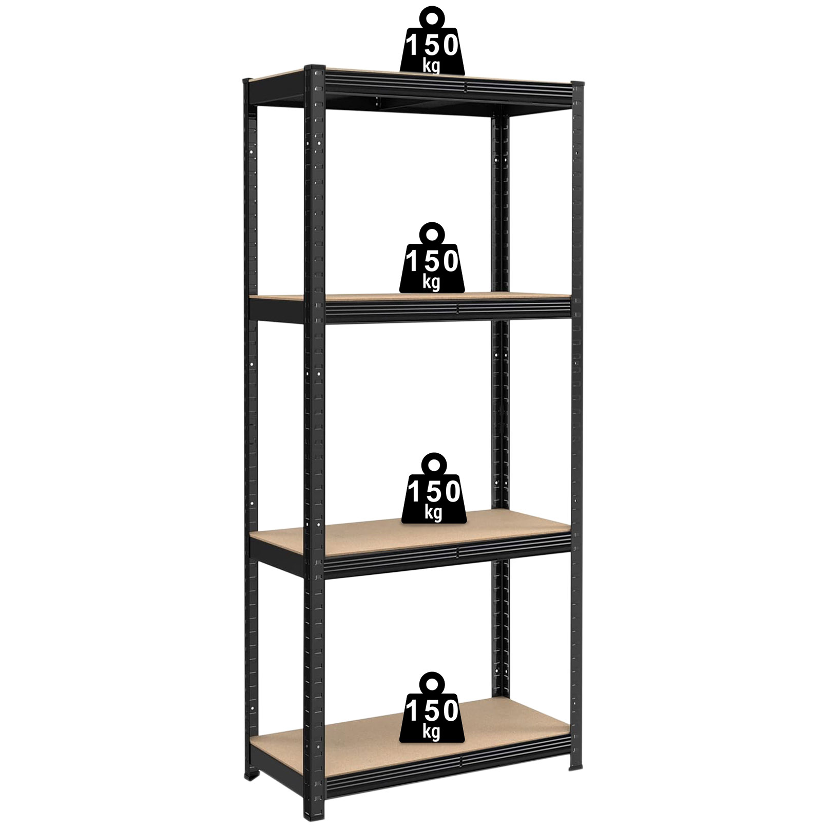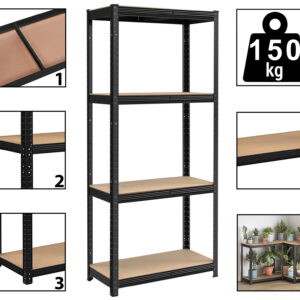 ⚙️Regał magazynowy 150 kg 4 poziomy 174x80x40 cm czarny – Doskonała organizacja w Twojej piwnicy, garażu czy biurze!⚙️