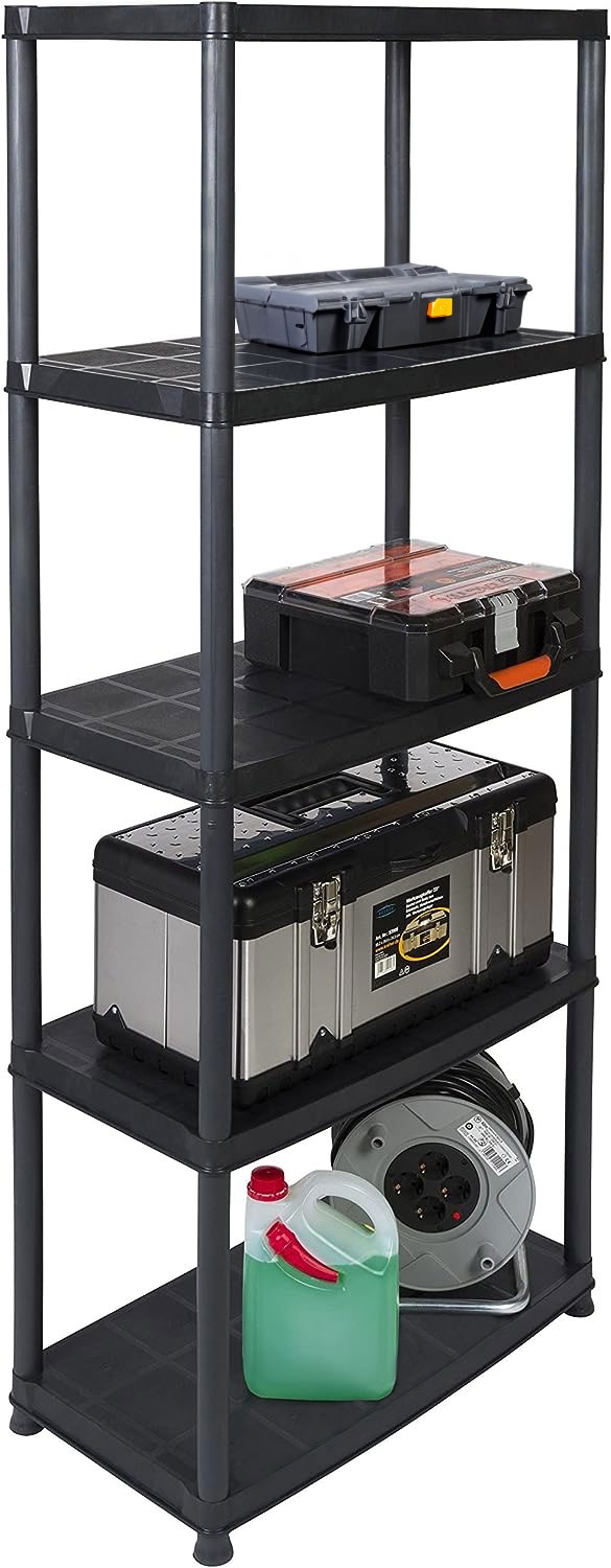 Regał Irving to uniwersalne, praktyczne i solidne rozwiązanie do przechowywania. Wykonany jest z wytrzymałego tworzywa sztucznego. Jego pięć solidnych półek, każda wytrzymująca obciążenie do 25 kg, czynią go doskonałym wyborem zarówno do zastosowań profesjonalnych, jak i domowych. Regał ten ma szerokie zastosowanie, doskonale sprawdzi się jako regał magazynowy, oferując wytrzymałość i stabilność potrzebną do przechowywania ciężkich przedmiotów. Idealnie spełni funkcję regału garażowego, jego solidna konstrukcja jest idealna do organizowania narzędzi, akcesoriów i sprzętu. W piwnicy czy spiżarni, regał Irving umożliwia efektywne wykorzystanie przestrzeni, zapewniając łatwy dostęp do przechowywanych przedmiotów. Co więcej, wyróżnia się on prostotą montażu dzięki swojej konstrukcji opartej na systemie wciskanym. Pozwala to na szybki, łatwy i intuicyjny montaż bez konieczności używania narzędzi. Ta cecha sprawia, że jest idealnym rozwiązaniem dla osób ceniących sobie wygodę i efektywność w organizacji przestrzeni. Możliwość błyskawicznego złożenia i rozłożenia regału sprawia, że jest on wyjątkowo praktyczny w różnorodnych warunkach, dostosowując się do potrzeb użytkownika zarówno w domu, jak i w miejscach pracy czy wypoczynku, łącząc w sobie trwałość, funkcjonalność oraz estetykę, co czyni go wszechstronnym rozwiązaniem do przechowywania w każdym otoczeniu.