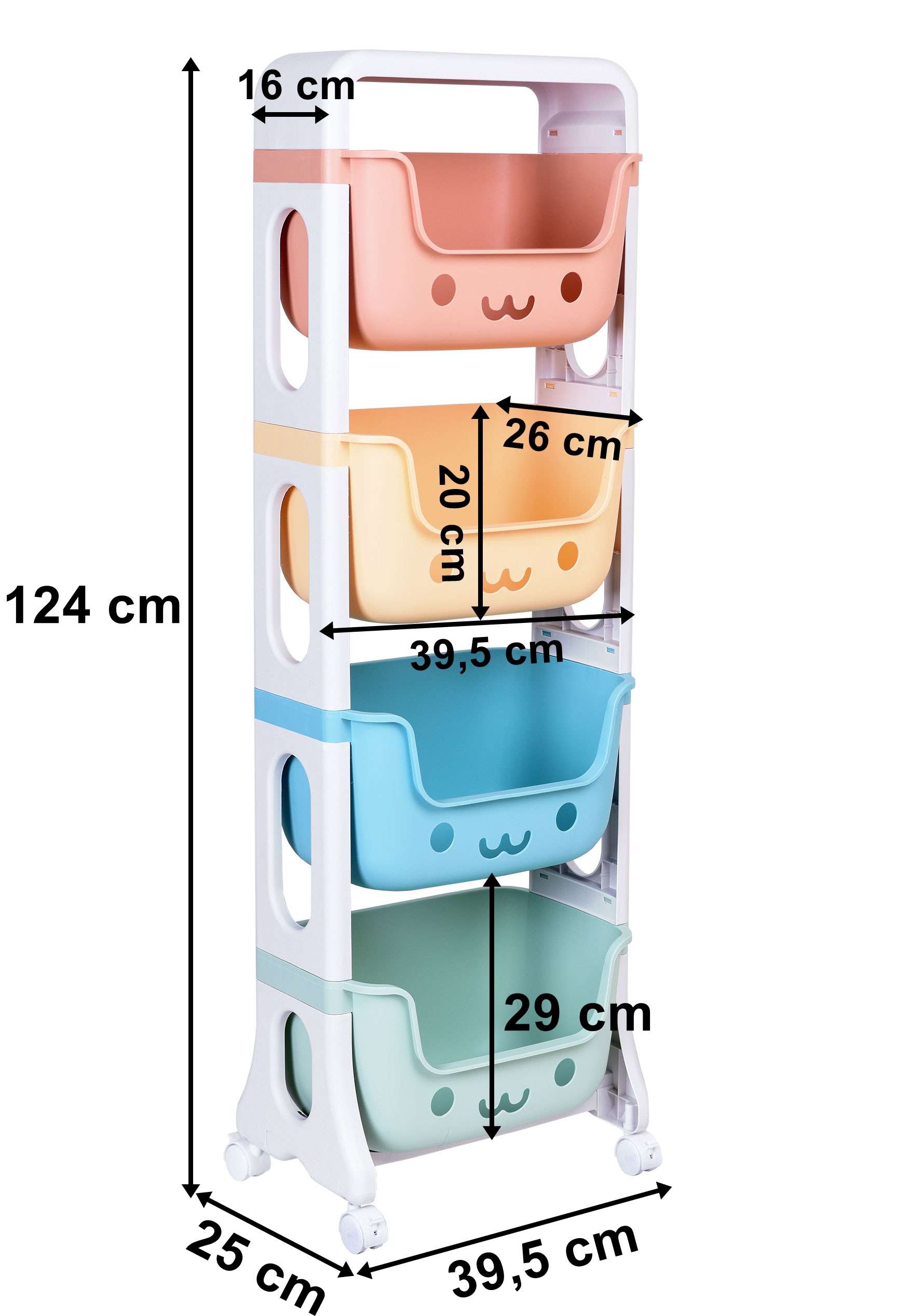Regał plastikowy na kółkach BOBBY z 4 półkami