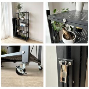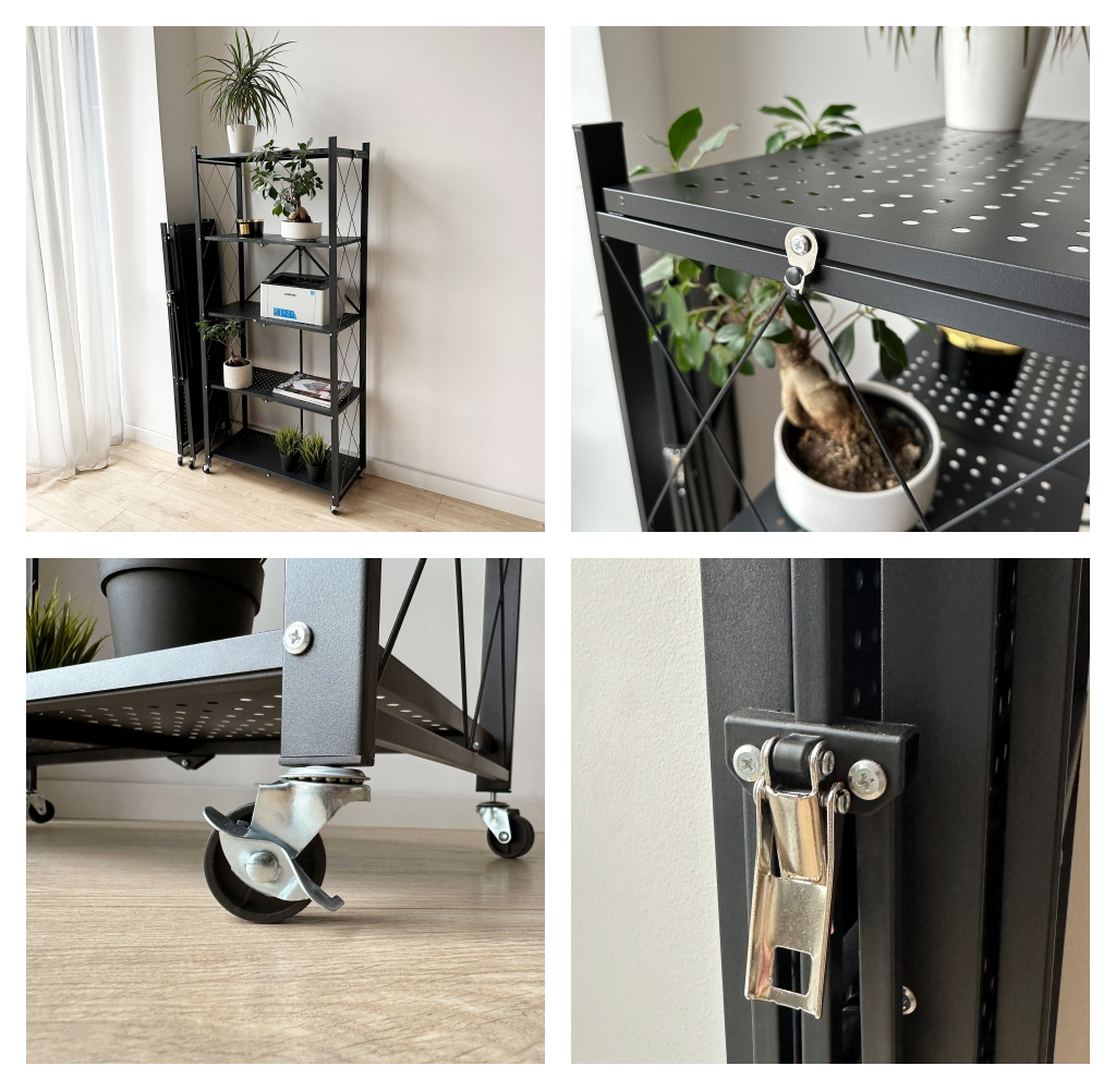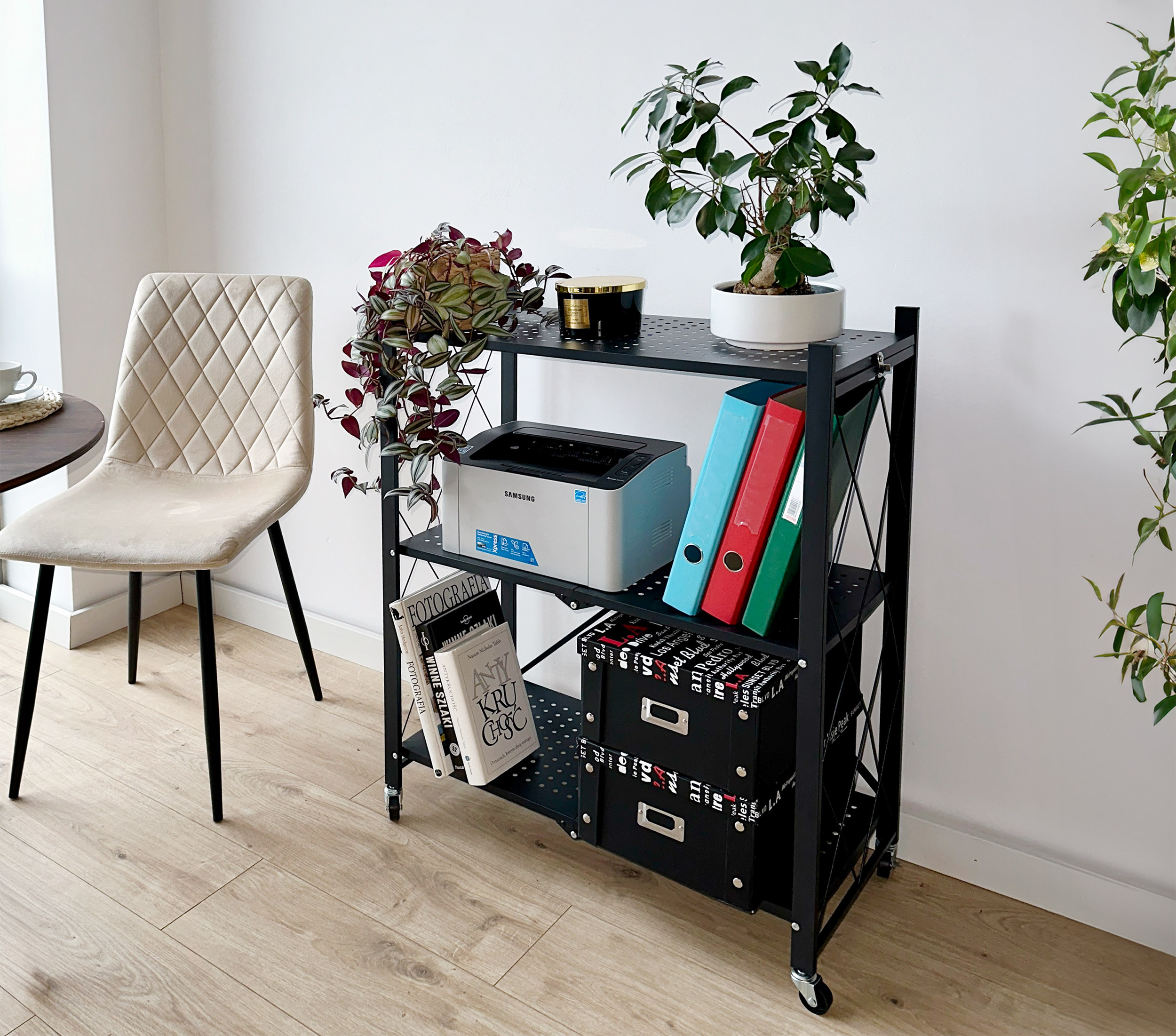 Regał składany GESTEL 3 poziomy czarny na kółkach