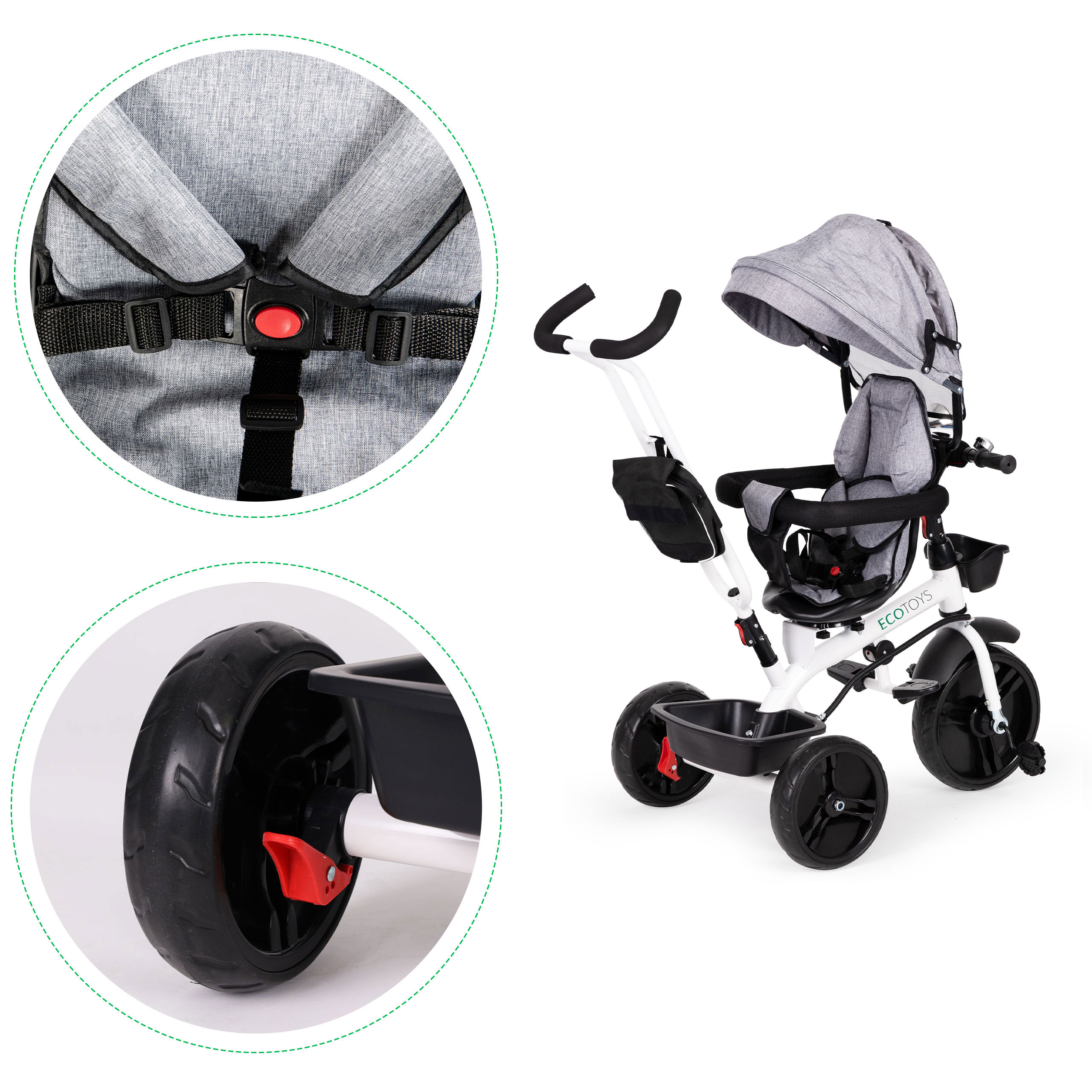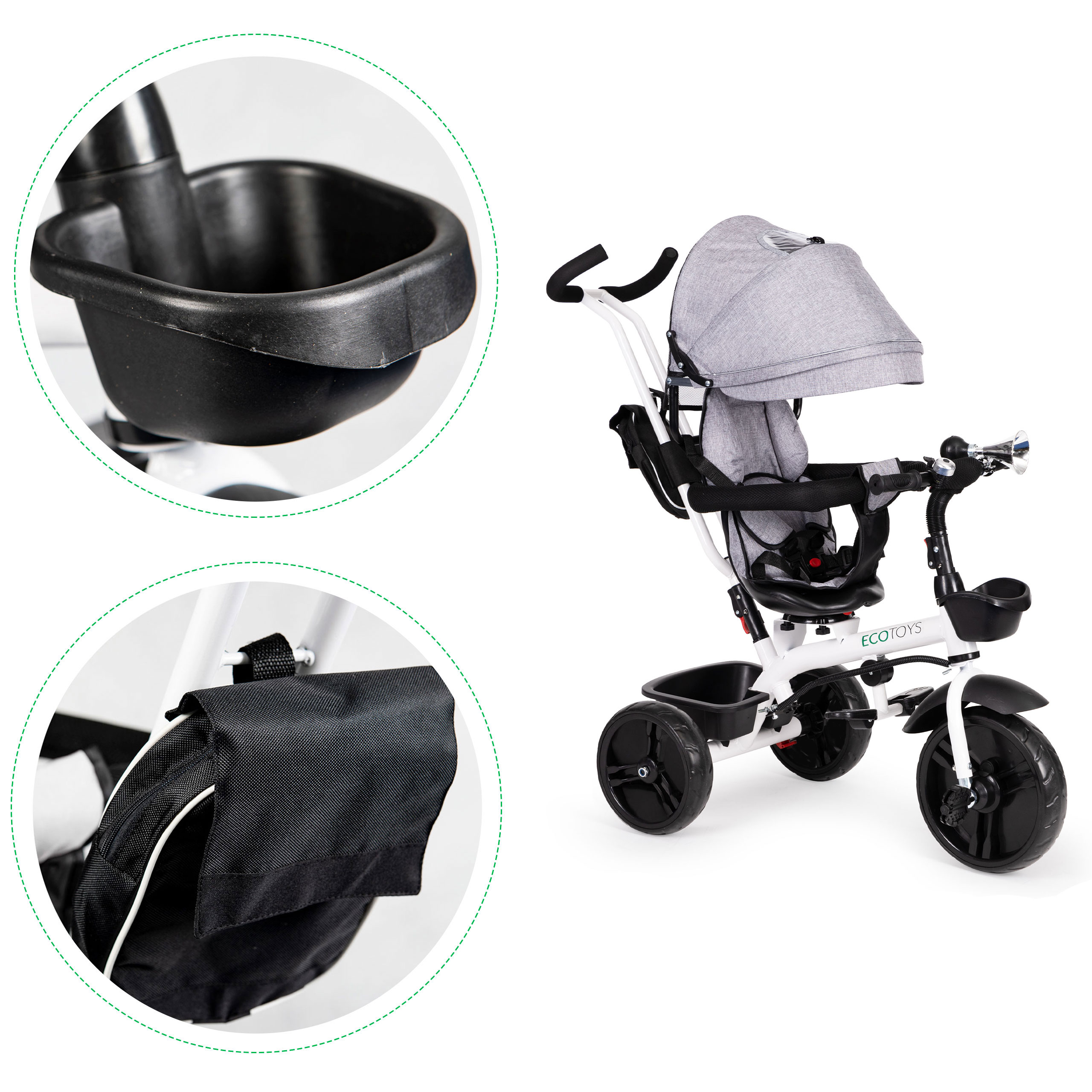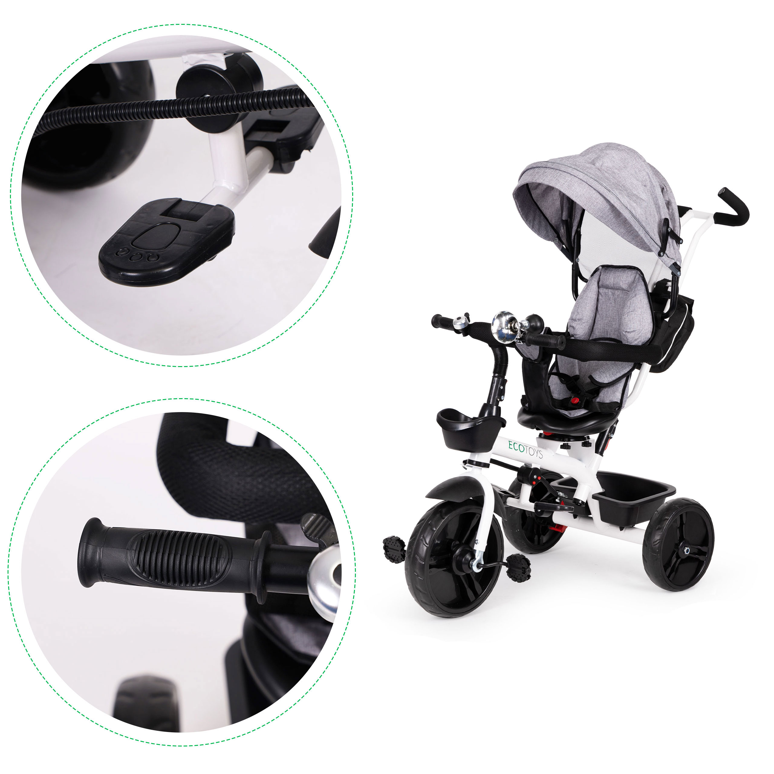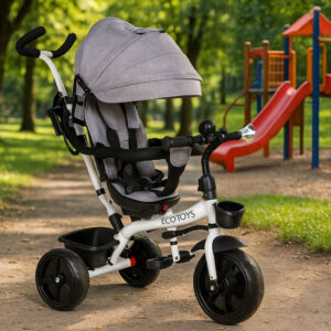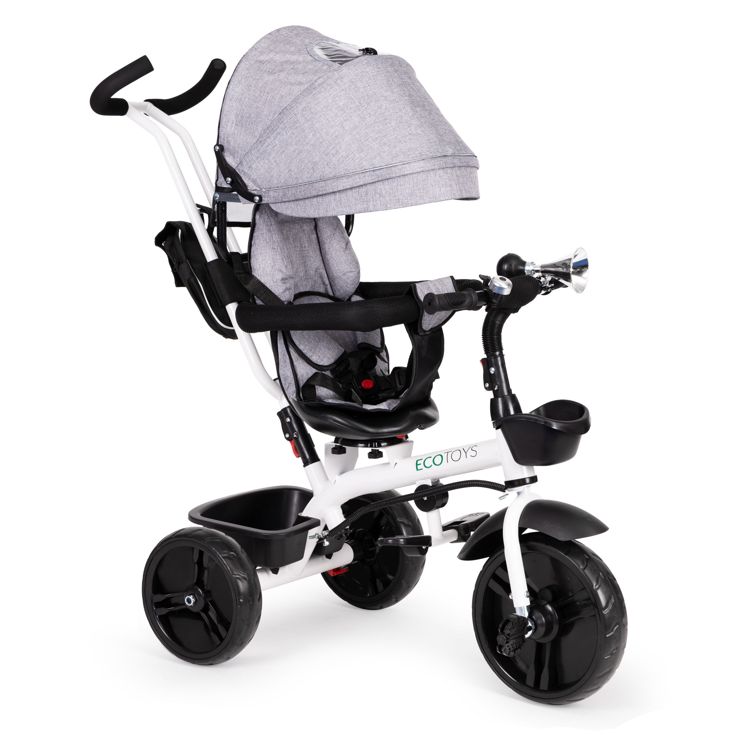 Rowerek trójkołowy obrotowy 360° szary z daszkiem ECOTOYS