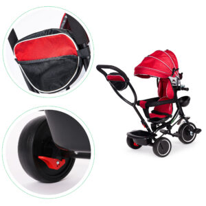 W zależności od wieku i samodzielności dziecka, masz możliwość zdjęcia daszku, barierek i rączki do prowadzenia rowerka. Jeśli Twoja pociecha jest już samodzielna, możesz zdjąć dodatkowe zabezpieczenia.