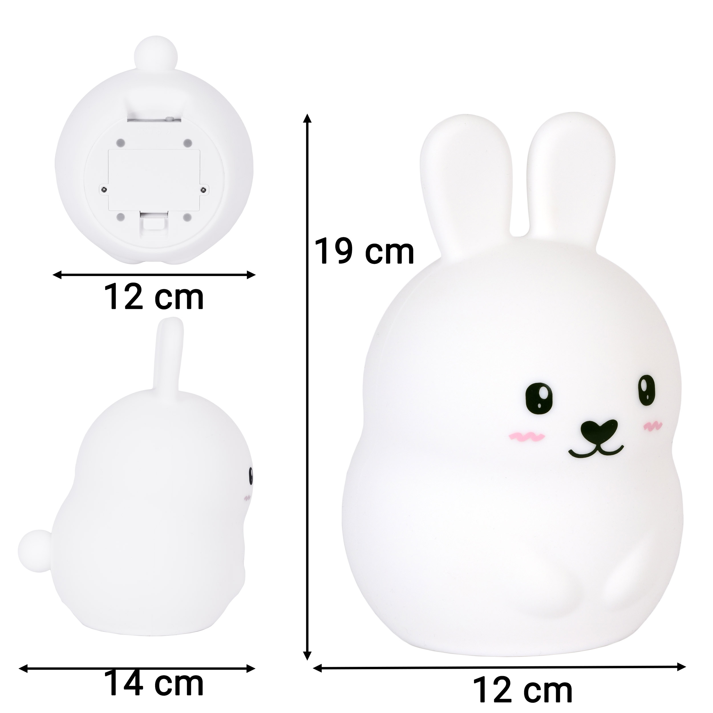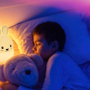 Lampka nocna w kształcie słodkiego królika LED idealnie nadaje się na prezent dla Twojego dziecka. Lampa wykonana z miękkiego i bezpiecznego silikonu, nie zawiera żadnych toksycznych substancji. Dzięki temu produkt nadaje się również dla najmłodszych. Ten uroczy królik posiada 3 tryby pracy, 9 kolorów i 3 timery. Dzięki uspokajającemu, ciepłemu światłu można przy tym bardzo łatwo zasnąć. Lampka nocna led zasilana jest za pomocą x3 baterii AAA lub kabla usb znajdującego się w zestawie. Sterowanie odbywa się za pomocą pilota zdalnego sterowania lub za pomocą stuknięć w lampkę. W nocy służy jako lampka nocna obok łóżka. W ciągu dnia zamienia się w zapierającą dech w piersiach dekorację. „Adoptuj” swojego własnego króliczka, aby cieszyć się jego wielofunkcyjnością.