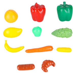 Wśród 47 elementów znajdziesz plastikowe owoce, warzywa,