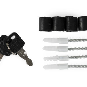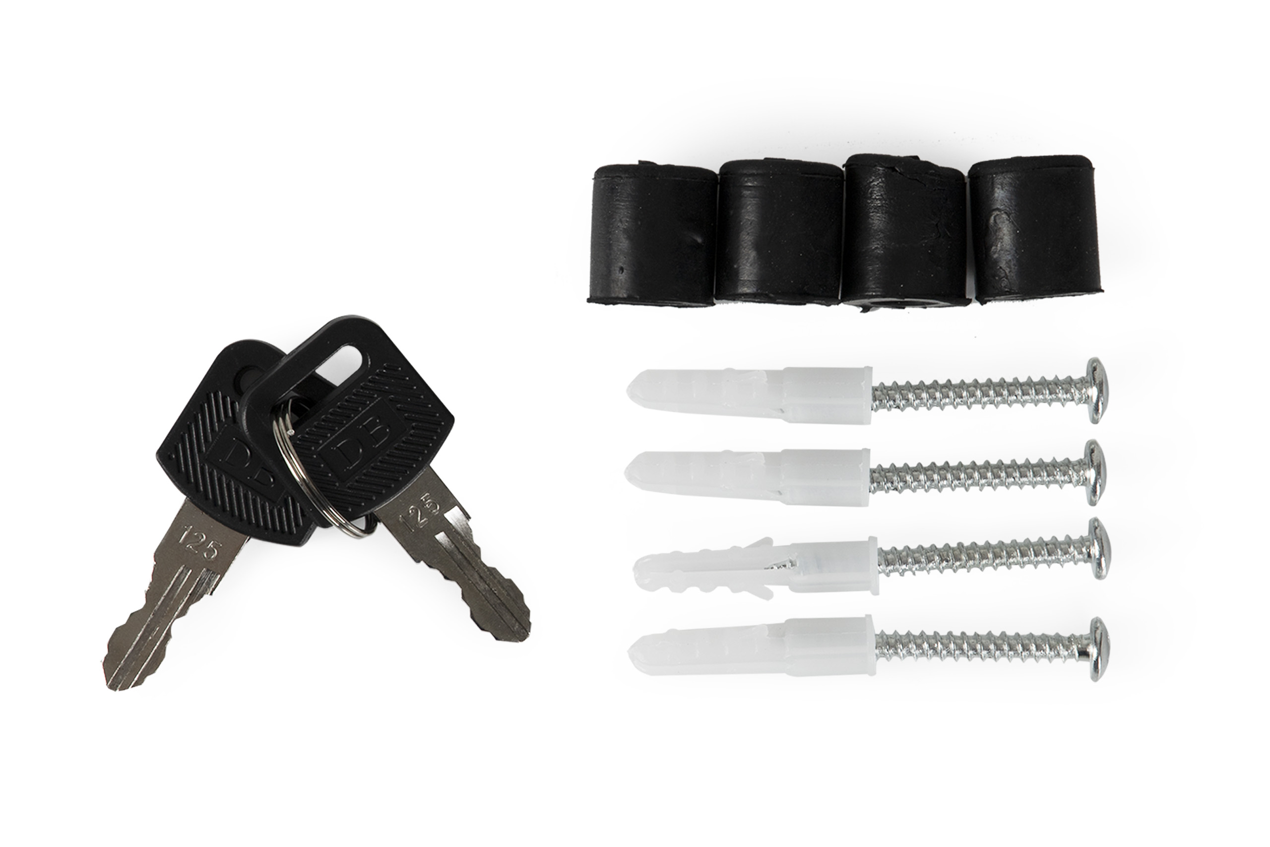 Razem ze skrzynką otrzymasz zestaw montażowy – 4 kołki i dystanse, dzięki temu możesz przystąpić do założenia skrzynki zaraz po rozpakowaniu. W zestawie znajdują się dwa klucze do otwierania skrzynki.