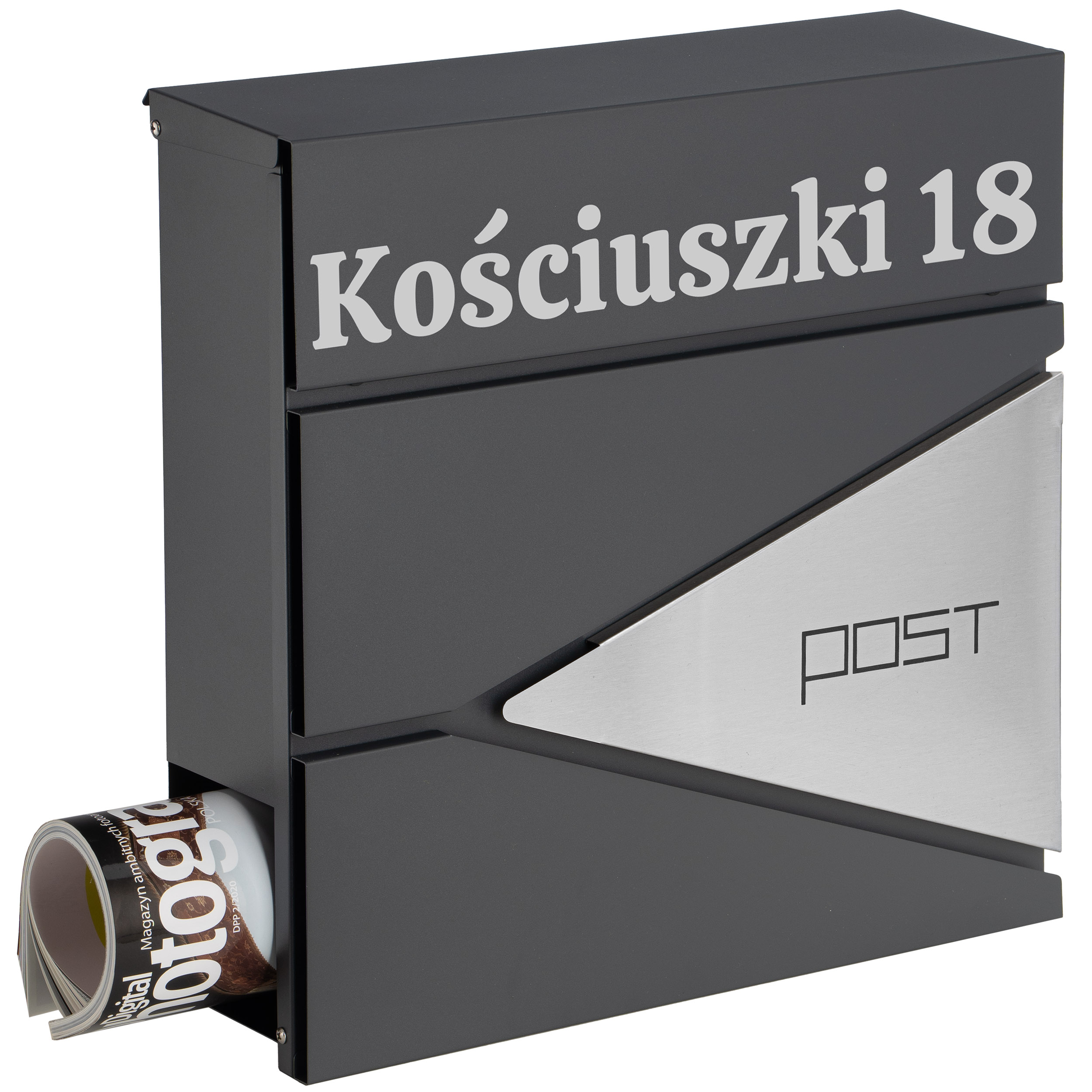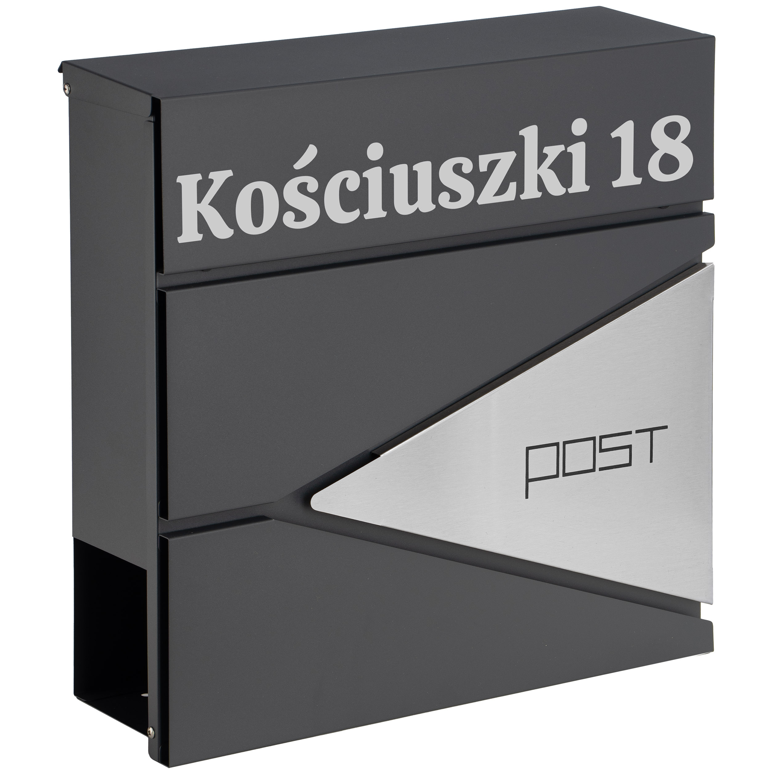 Skrzynka pocztowa na listy Boris antracyt z napisami