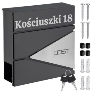 Skrzynka na listy Boris z napisem to wyjątkowe połączenie stylu, trwałości i praktyczności. Wykonana ze stali galwanizowanej z ozdobną wstawką ze stali nierdzewnej, nie tylko doskonale wygląda, ale także jest odporna na warunki atmosferyczne. Skrzynka posiada wygodne miejsce na gazety oraz ulotki, a wrzut na listy jest zasłonięty uchylną klapą, co dodatkowo zabezpiecza korespondencję. Dzięki zamknięciu na klucz Twoje listy i dokumenty będą zawsze bezpieczne. Zestaw montażowy sprawia, że instalacja skrzynki jest szybka i bezproblemowa.