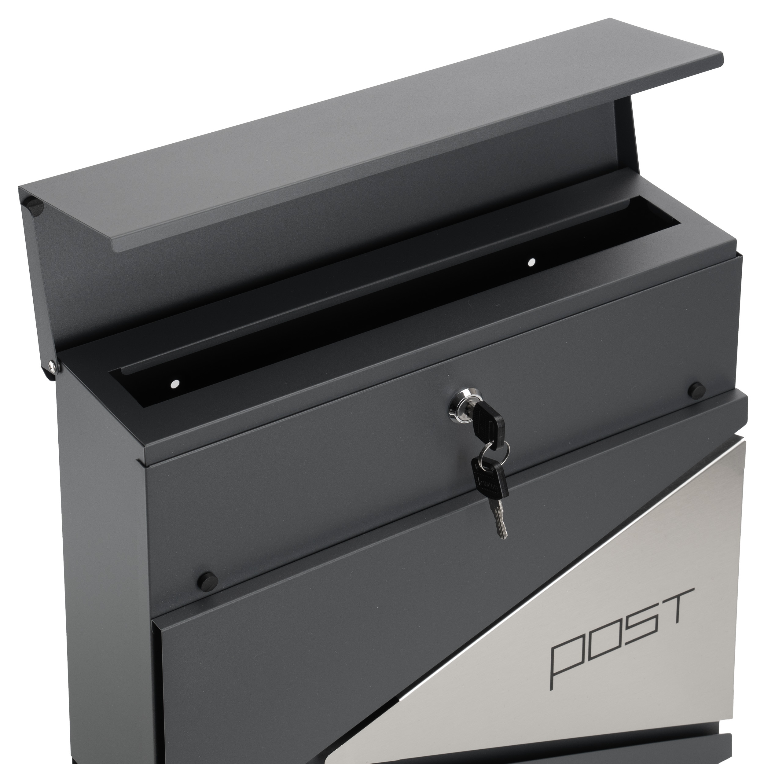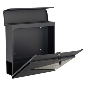 Skrzynka na listy Boris łączy w sobie stylowy wygląd, solidność i funkcjonalność. Wykonana z galwanizowanej stali z elegancką wstawką z nierdzewnego materiału, zachwyca estetyką, a jednocześnie jest wysoce odporna na zmienne warunki pogodowe. Wyposażona w wygodny gazetnik, oferuje dodatkowe miejsce na ulotki i gazety, a uchylna klapa nad wrzutem skutecznie chroni korespondencję. Zamek na klucz zapewnia bezpieczeństwo Twoich listów i dokumentów, a dołączony zestaw montażowy sprawia, że montaż skrzynki jest łatwy i szybki.