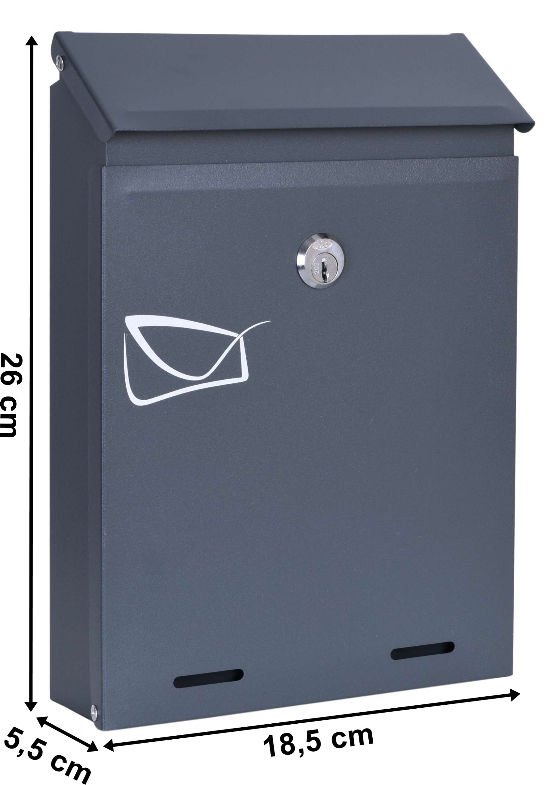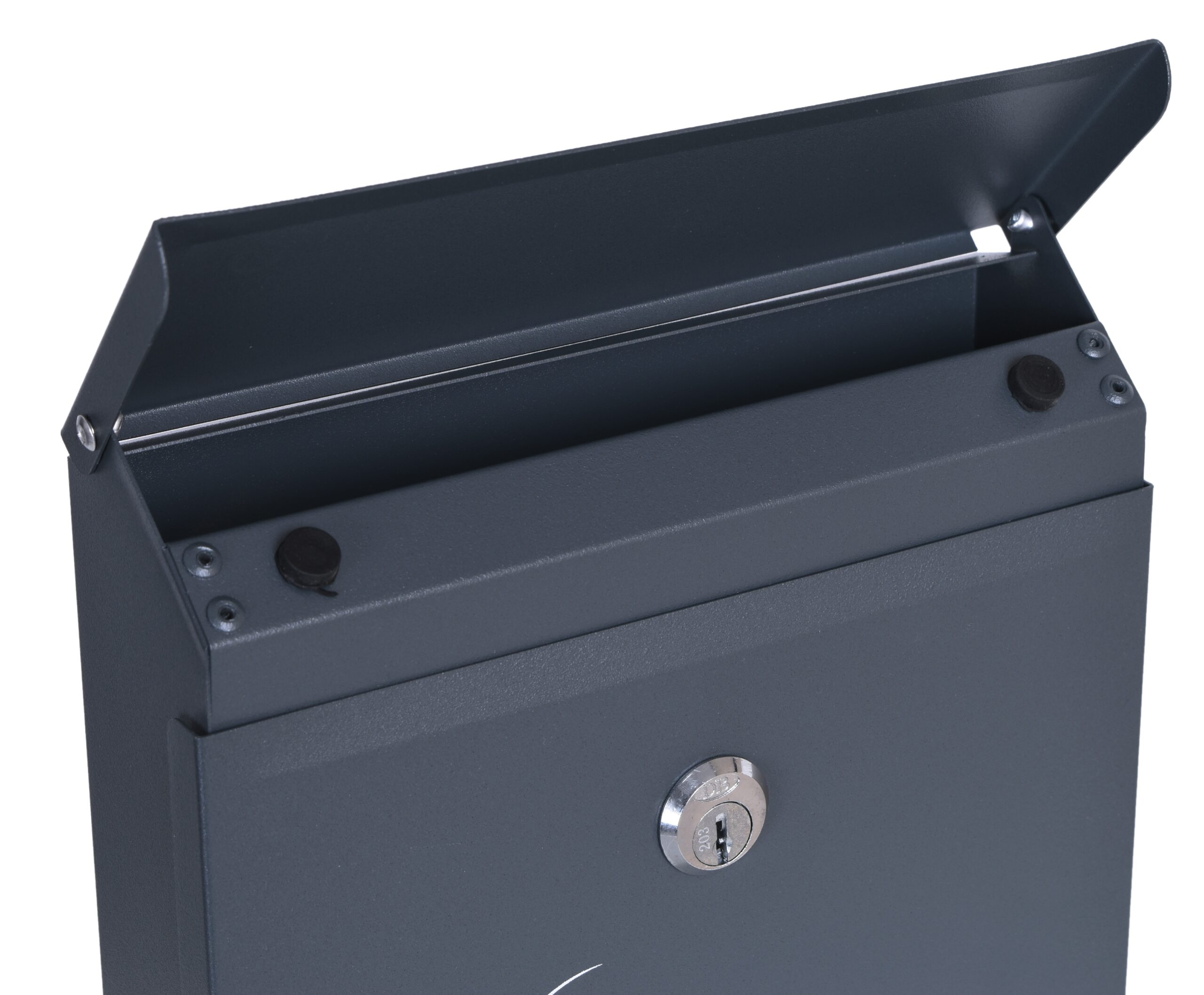 Nowoczesna i funkcjonalna skrzynka pocztowa Odvin antracyt, zaprojektowana z myślą o trwałości i elegancji. Kompaktowe wymiary 26 x 18,5 x 5,5 cm oraz otwór na listy 18 x 2 cm idealnie sprawdzają się w mniejszych przestrzeniach. Wykonana z odpornej na warunki atmosferyczne stali galwanizowanej malowanej proszkowo, nadaje się do montażu na zewnątrz i wewnątrz. Bezpieczna dzięki zamkowi na klucz – zestaw zawiera 2 kluczyki i elementy montażowe. Solidność i styl w jednym!