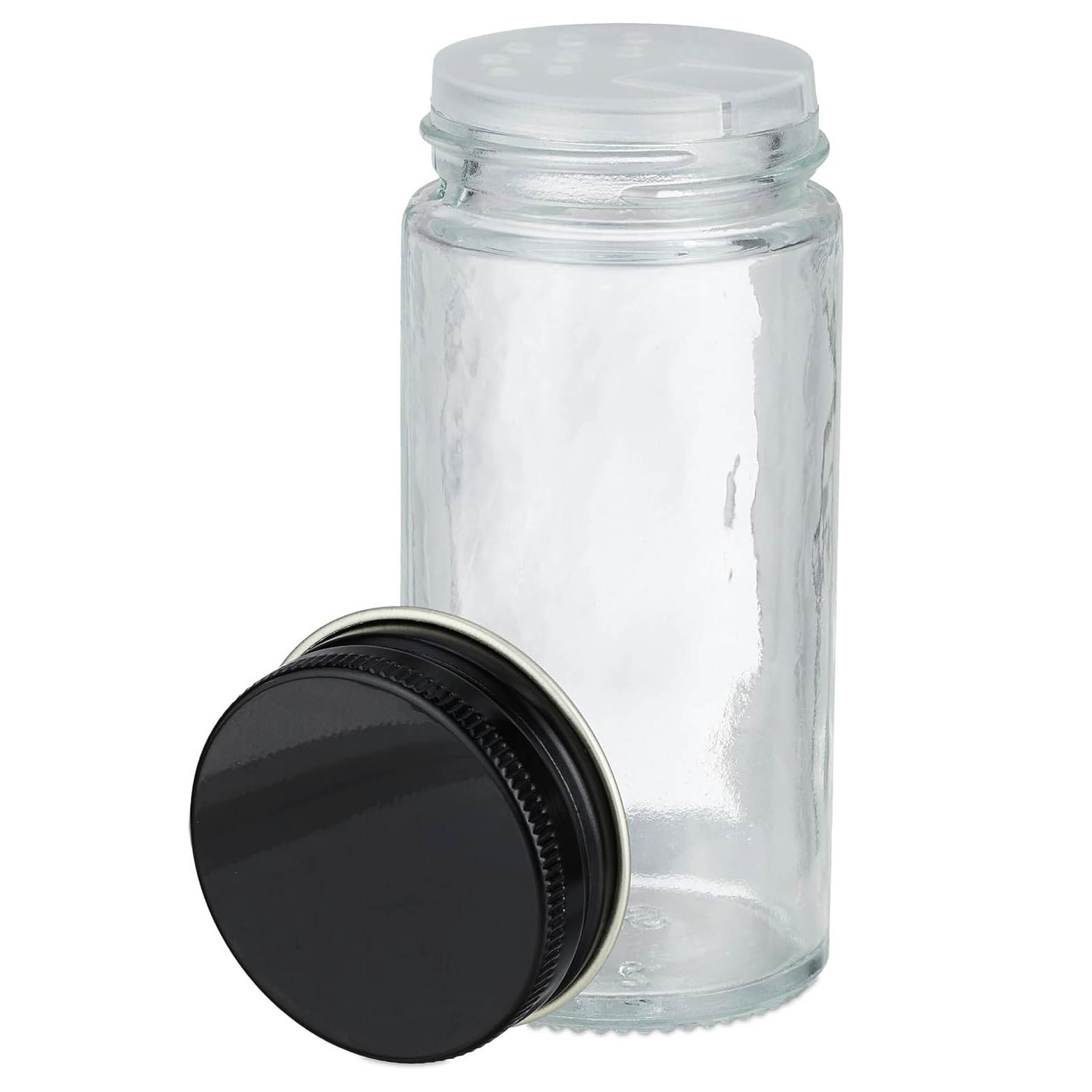 Wykonane z solidnego i trwałego szkła. Funkcjonują w systemie 2w1. Można przyprawiać potrawy na dwa sposoby, albo za pomocą klasycznych otworów lub otworzyć wieko i wsypać większą ilość przypraw. Klasyczne otwory nadadzą się bardziej do przypraw zmielonych, a wieko do tych w całości jak pieprz, ziele angielskie itp.