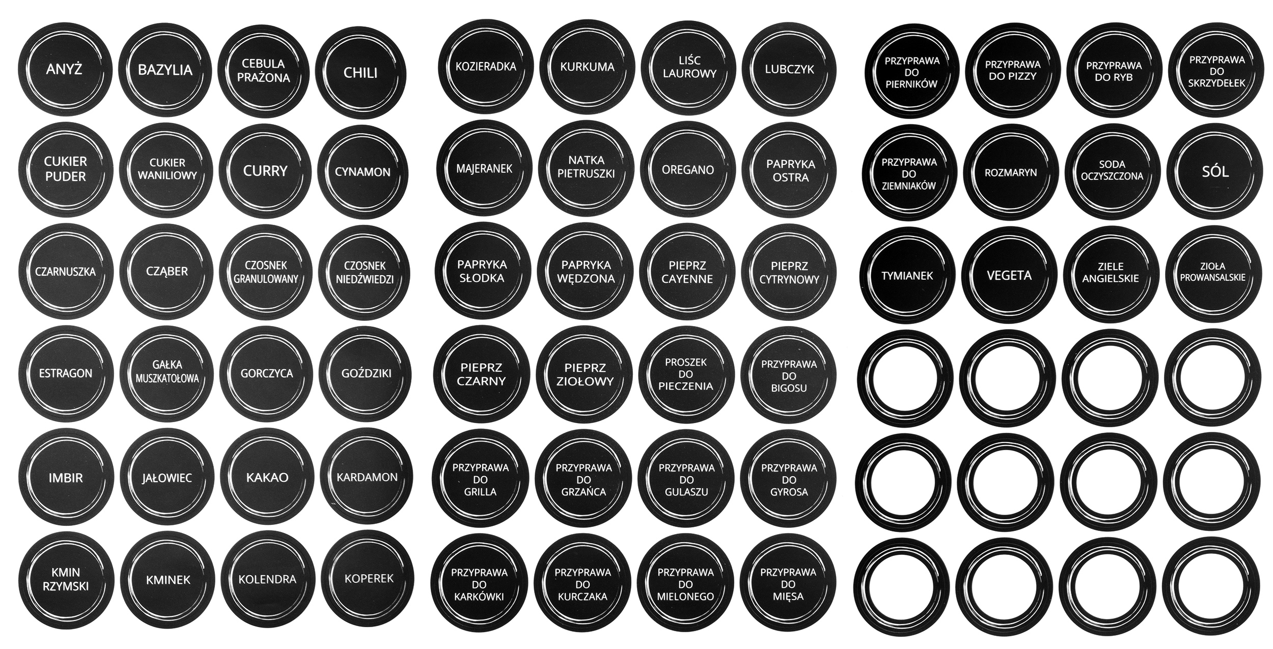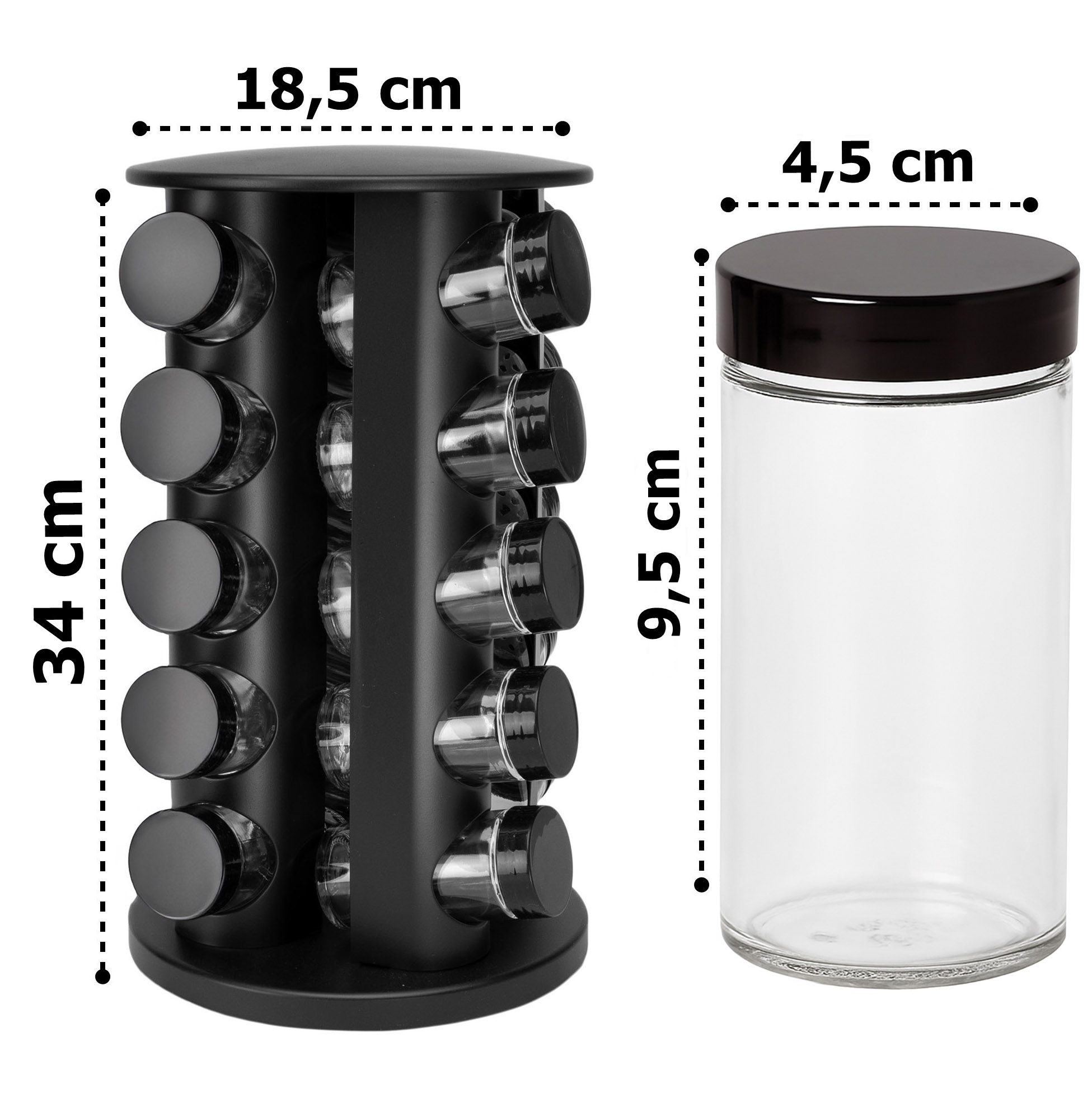 Stojak na przyprawy obrotowy ROTOR BLACK 20 słoiczków + 72 naklejki