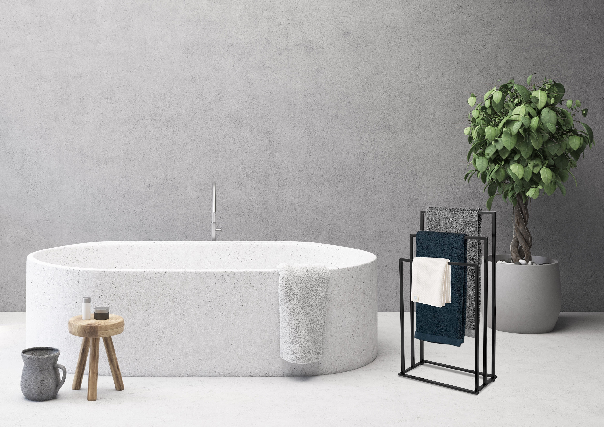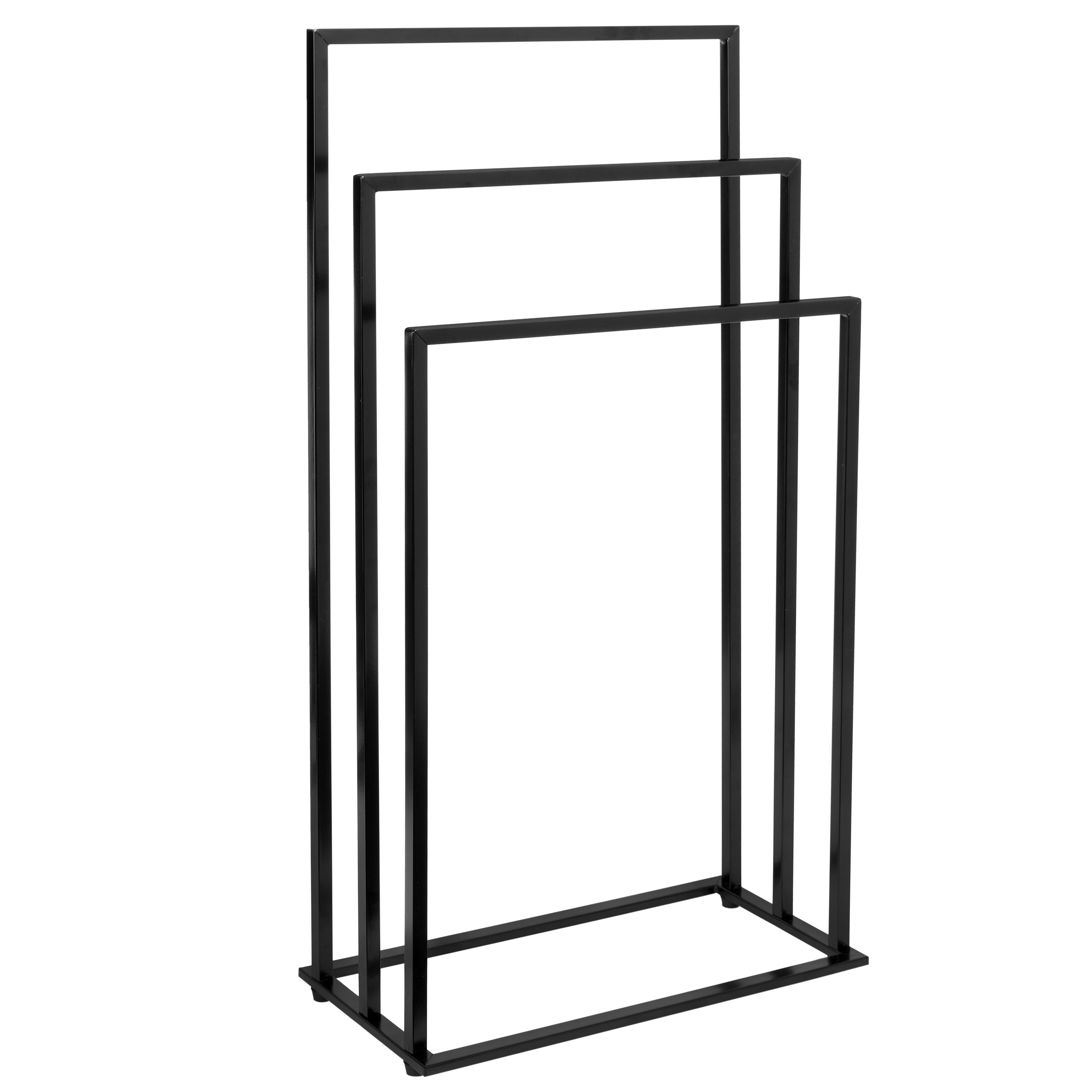 Tire to praktyczny wieszak na ręczniki wykonany z malowanej proszkowo, najwyższej jakości stali. Ma trzy ramiona na różnych wysokościach, ramową konstrukcję w kształcie litery U, ochronne stopki i czarny, matowy kolor. Stanowi doskonałe uzupełnienie każdej łazienki, pasując zarówno do stylu loftowego, jak i industrialnego.