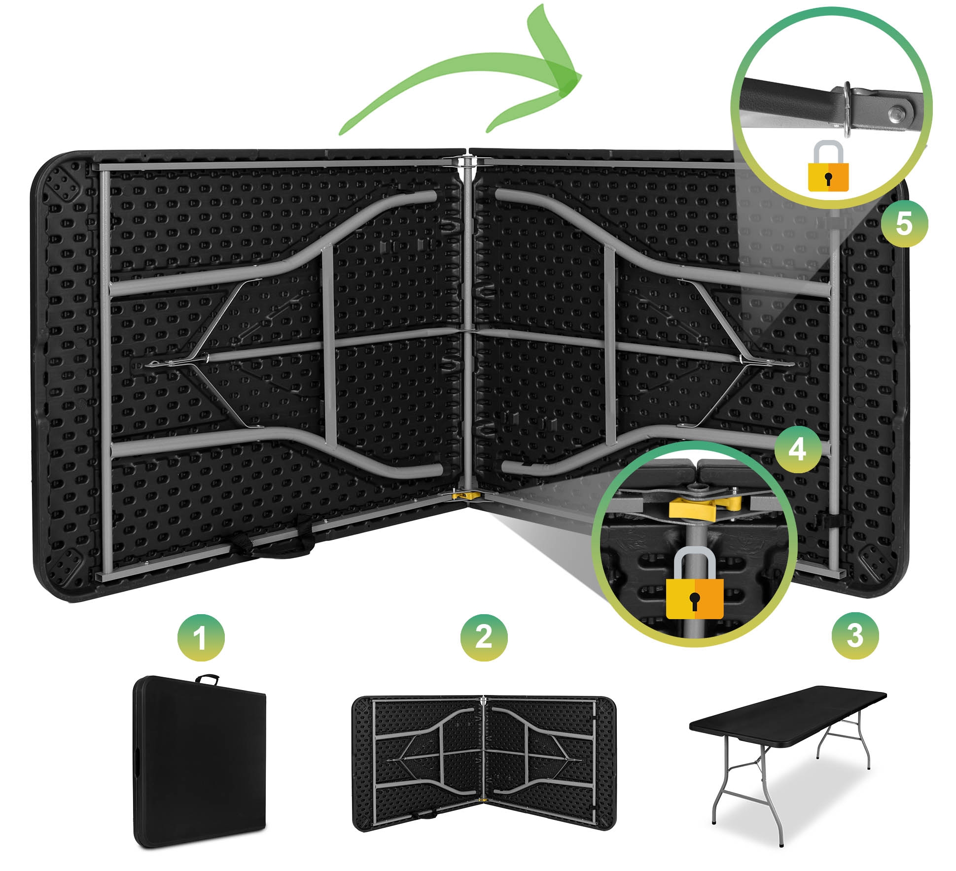 Stół cateringowy FETA składany w walizkę 180 cm czarny