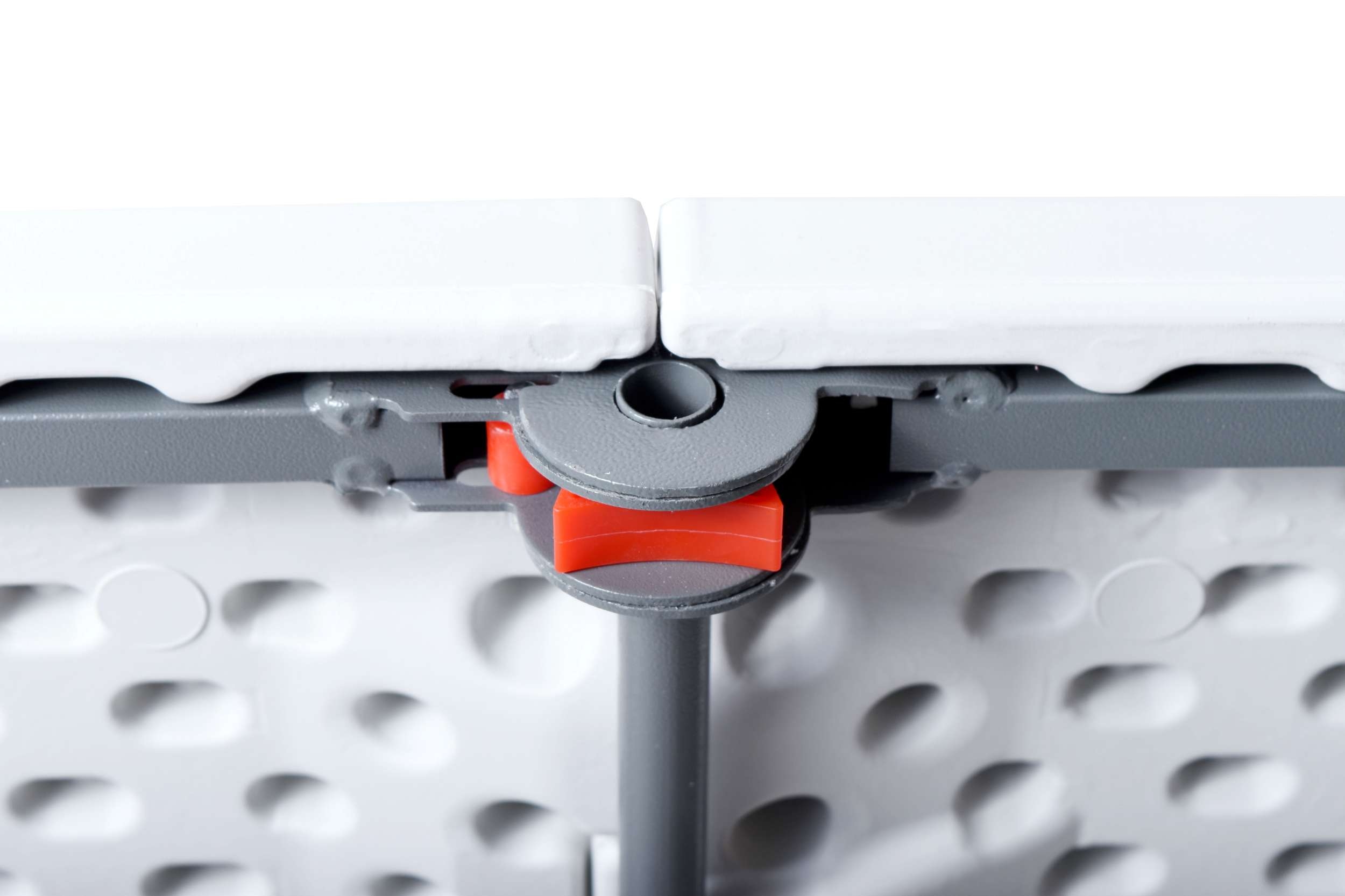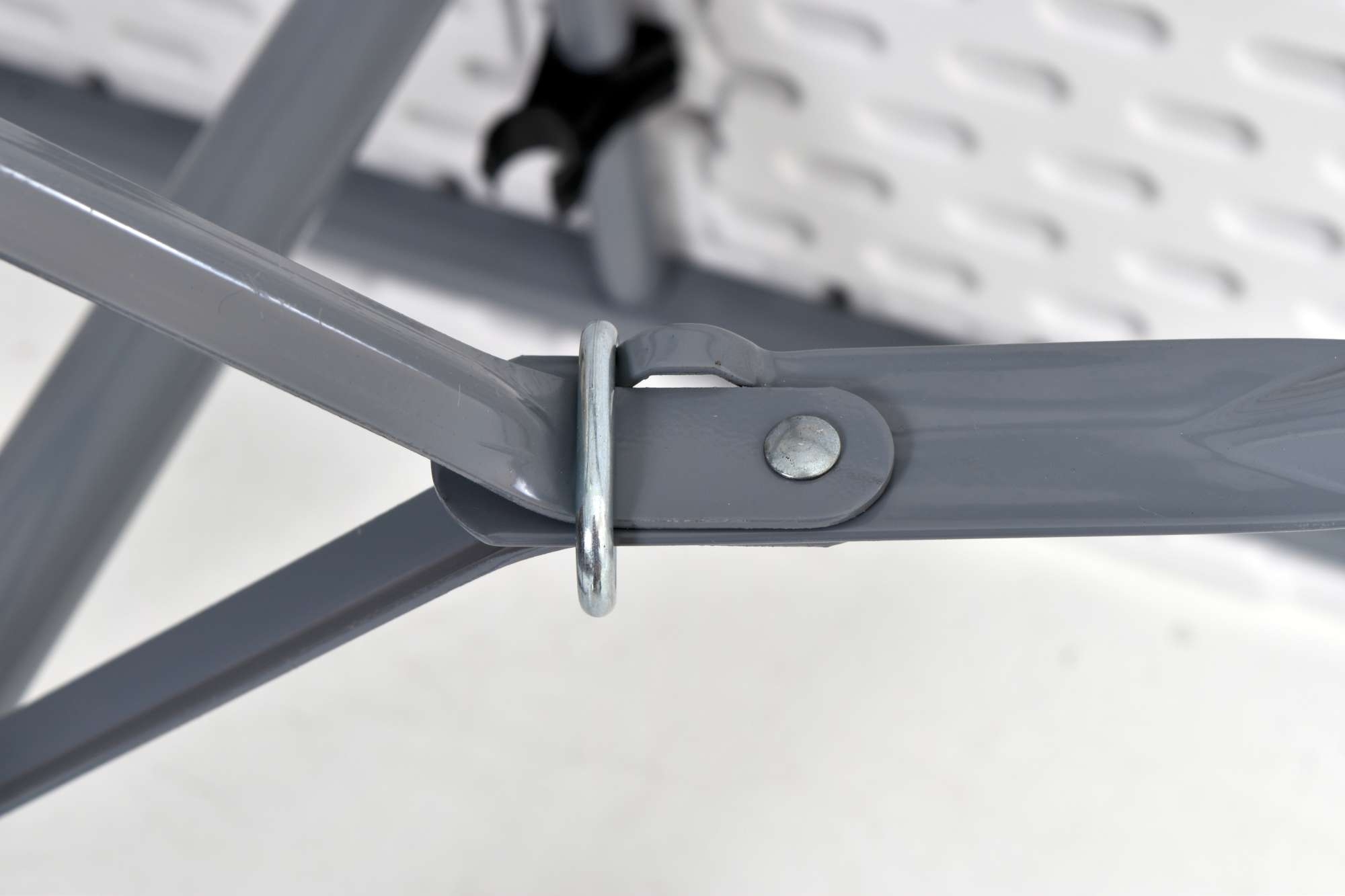Bardzo praktyczny i lekki stół cateringowy. Konstrukcja wykonana z metalu malowanego proszkowo. Blat wykonany z mocnego tworzywa sztucznego. Stolik po złożeniu tworzy praktyczną walizkę dzięki czemu zajmuje małą przestrzeń i jest łatwy do przeniesienia. Doskonale sprawdzi się na kempingu. Dzięki unikalnemu projektowi całość konstrukcji chowa się w blat stołu, tworząc ergonomiczną walizkę. Najwyższej jakości tworzywo użyte do produkcji blatu czyni go najmocniejszym z oferowanych na polskim rynku.