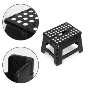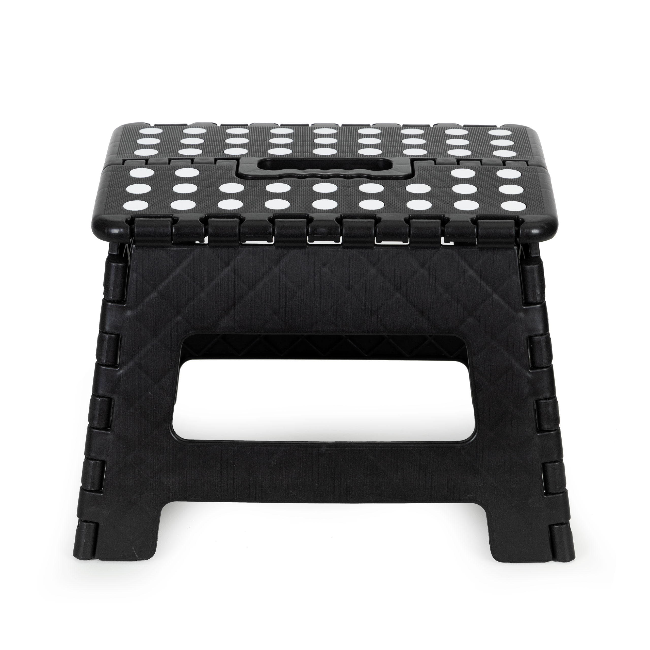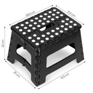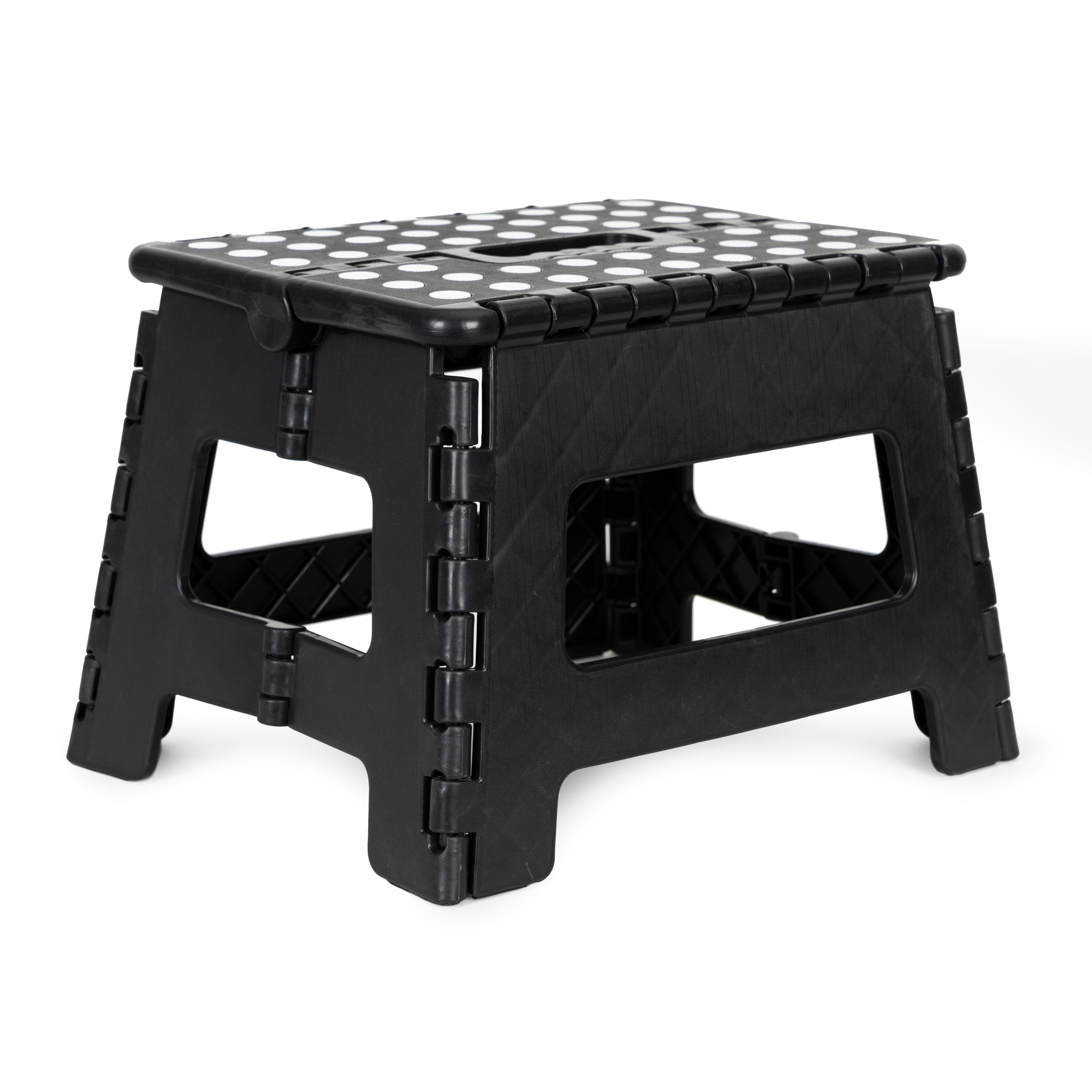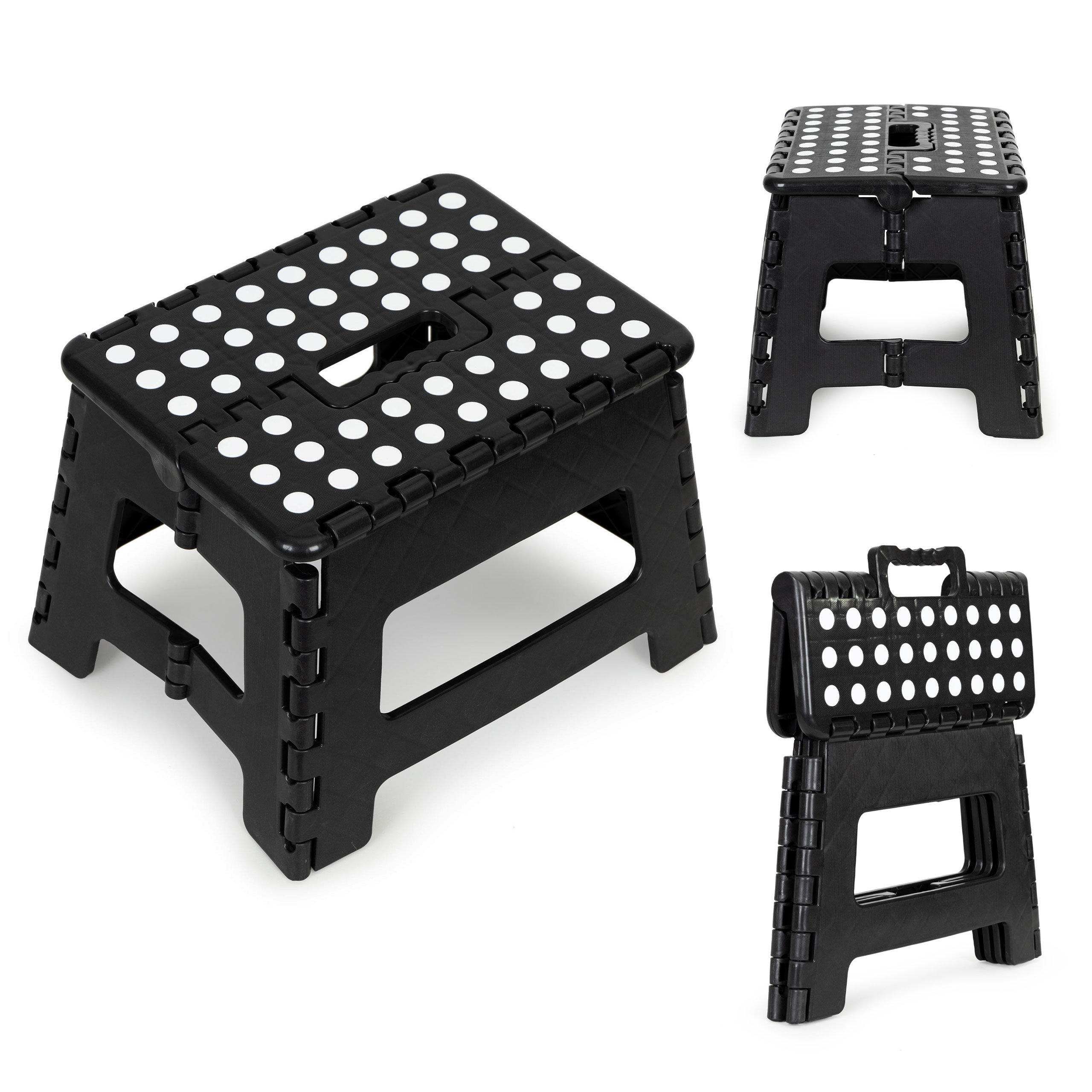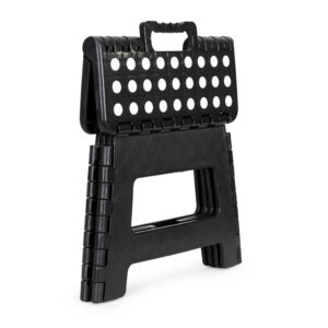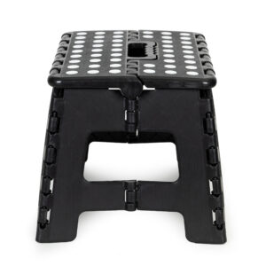 Bezpieczeństwo to dla nas priorytet. Nasz składany stołek został wyposażony w gumowe, antypoślizgowe stopki, które zapewniają stabilność na różnych rodzajach podłoża. Górna część – podest, wykończona jest gumowymi elementami, które tak jak stopki, zapobiegają ślizganiu się podczas wchodzenia na stołek. Dzięki temu, podczas korzystania z niego poczujesz się bezpiecznie.