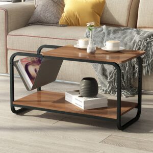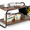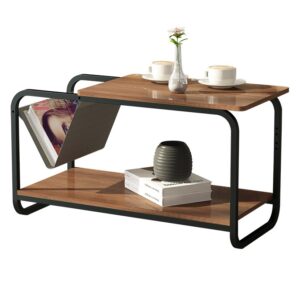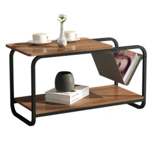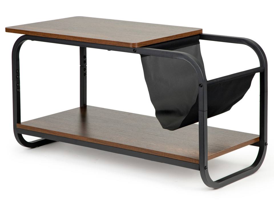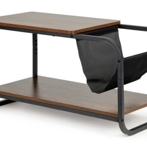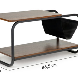 Stolik posiada stabilny wykonany z metalu stelaż, który został pomalowany proszkowo. Blat i dolna półka została wykonana z MDF-u i pokryta okleiną imitującą kolor oraz fakturę drewna. Stolik posiada gazetownik wykonany z wytrzymałej tkaniny, która pomieści Twoje ulubione czasopisma.