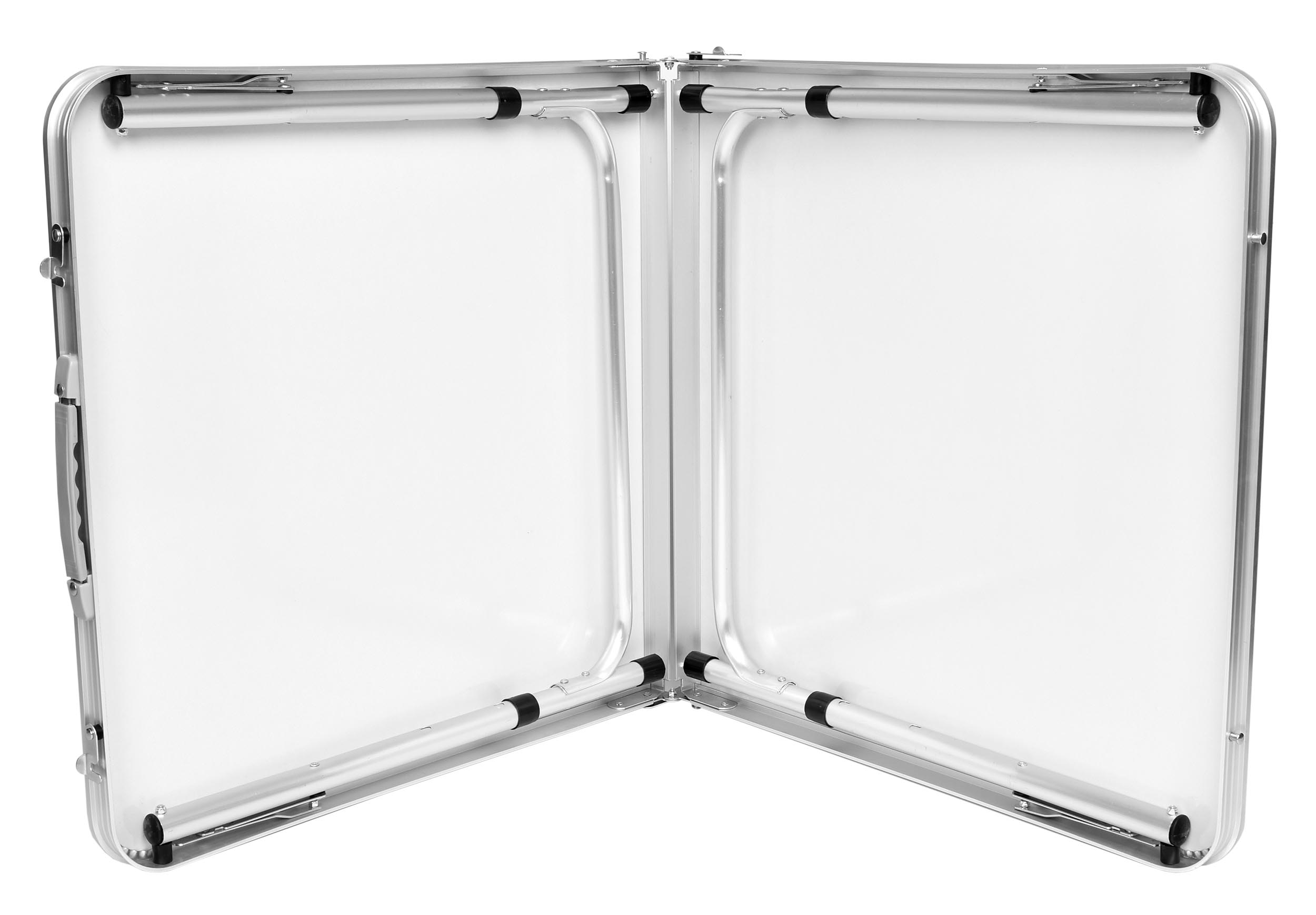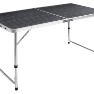 Kup teraz kempingowy stół turystyczny o nowowczesnym designie, z trzypoziomową regulacją wysokości. Stół składa się z aluminiowego stelaża oraz blatu z płyty MDF wysokiej jakości. Zastosowane materiały gwarantują niską wagę 4kg i dodatkowo łatwy transport. Stolik bardzo łatwo się rozkłada i składa do postaci walizki.