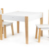 Wspaniały zestaw dla wszystkich maluchów, dzięki swojej prostej formie idealnie wpasuje się w wystrój dziecięcych pokoików, sal zabaw, czy poczekalni. Stół posiada solidne, sosnowe nogi nadające mu stabilności, blat wykonany jest z MDF-u, co sprawia, że jest łatwy w utrzymaniu i odporny na uszkodzenia/zarysowania. Uzupełnieniem zestawu są dwa stabilne i wygodne krzesełka.