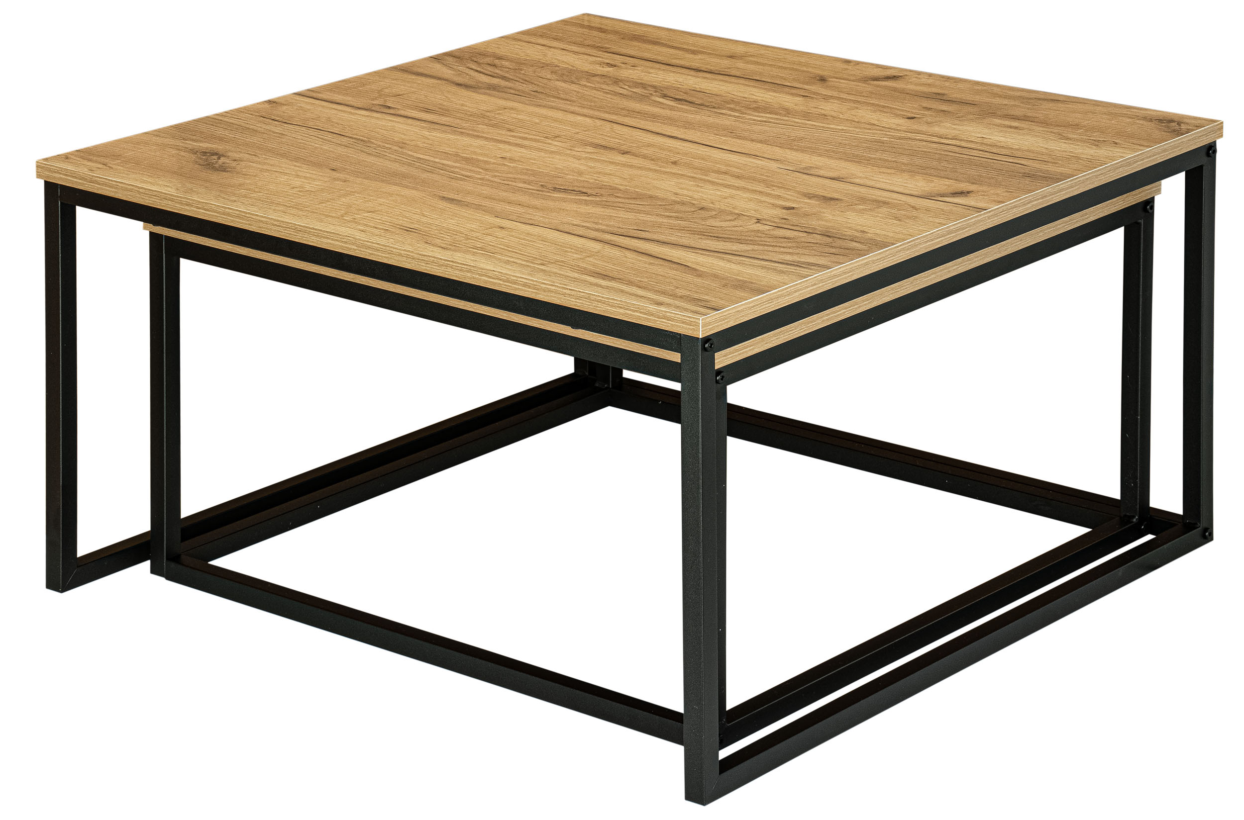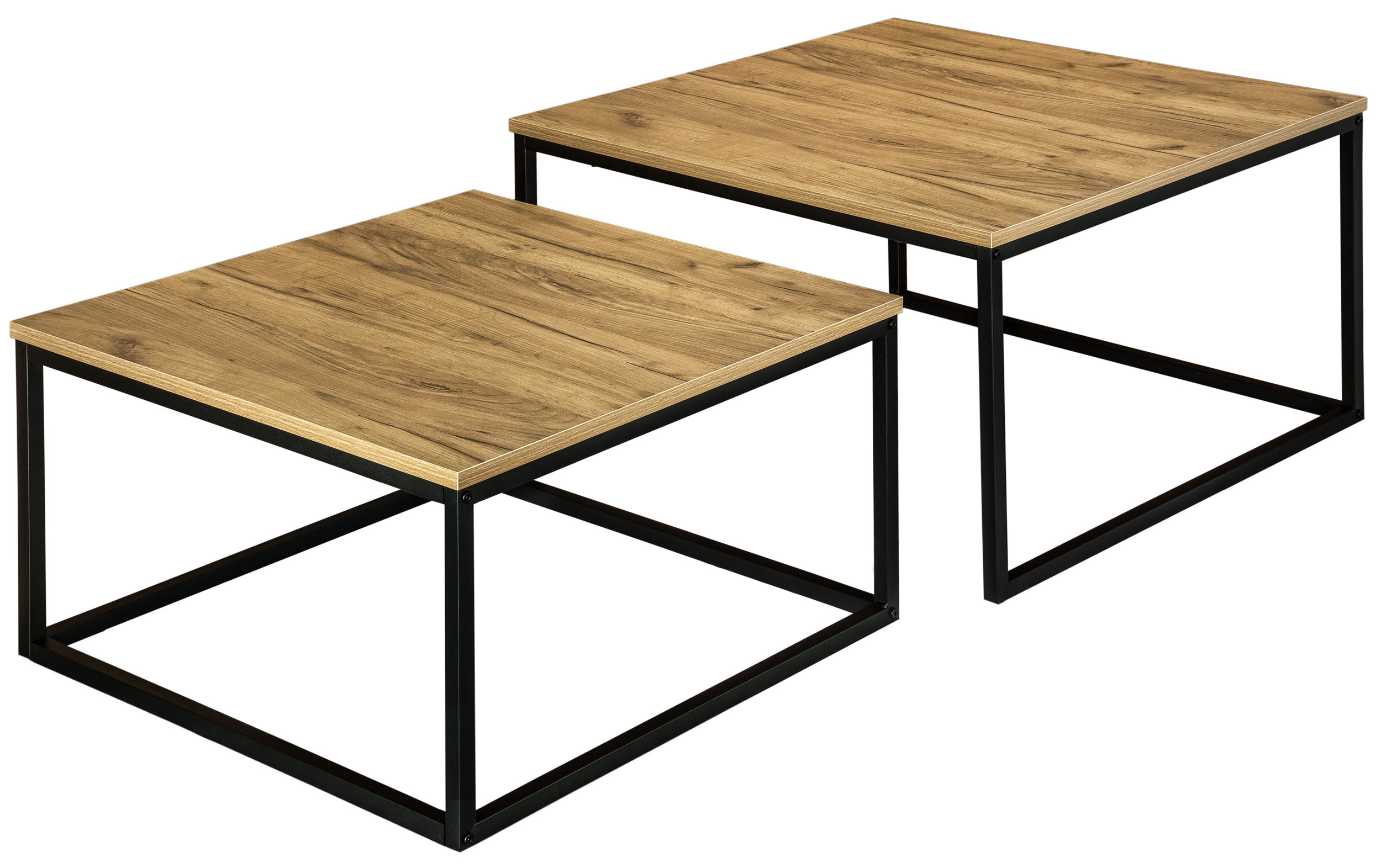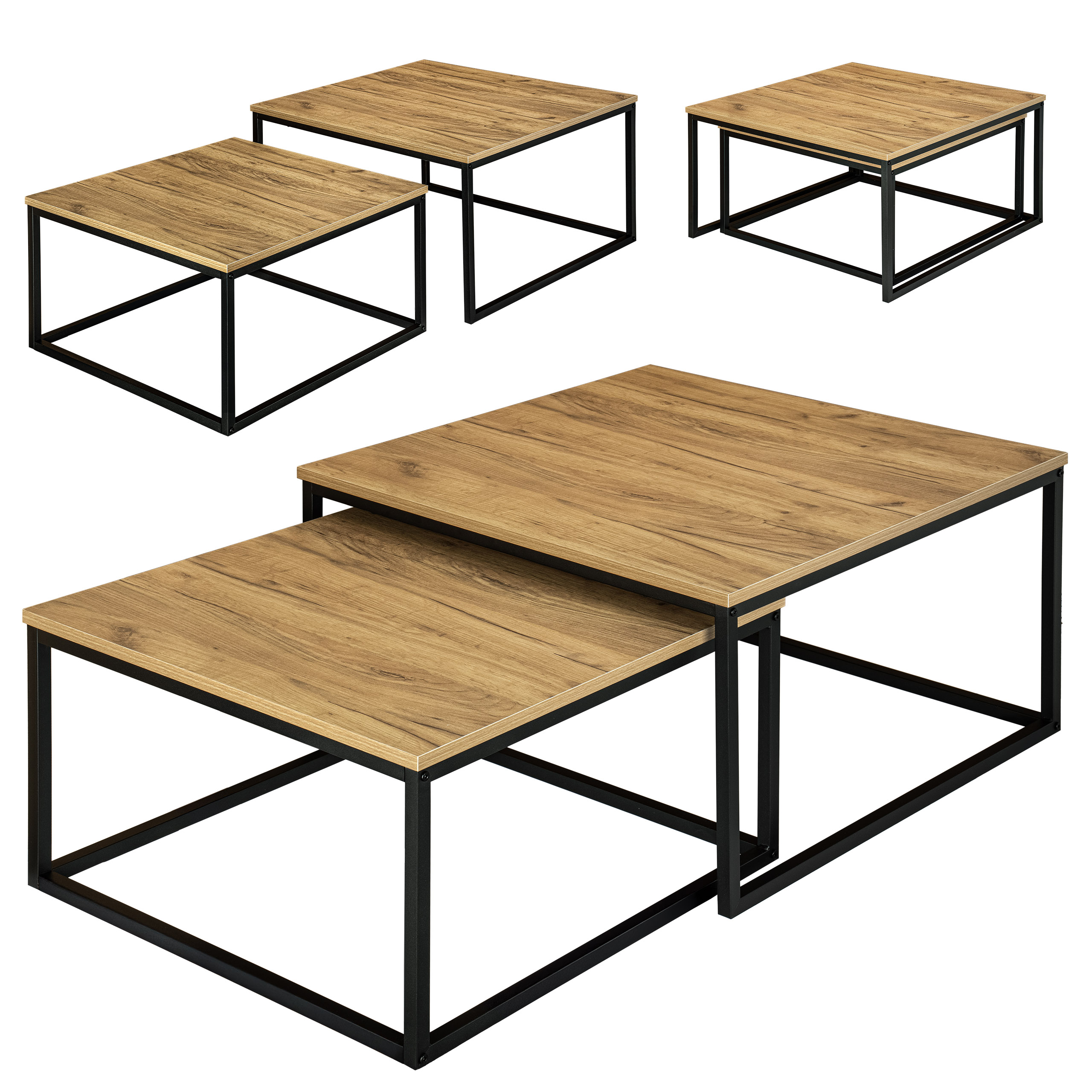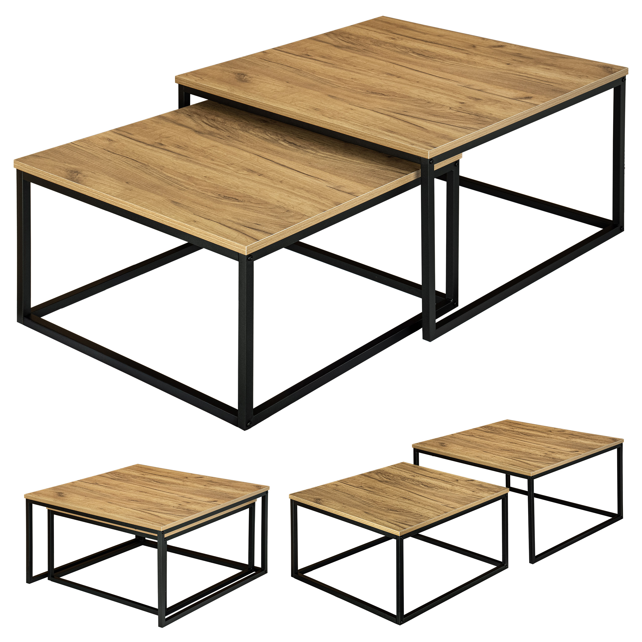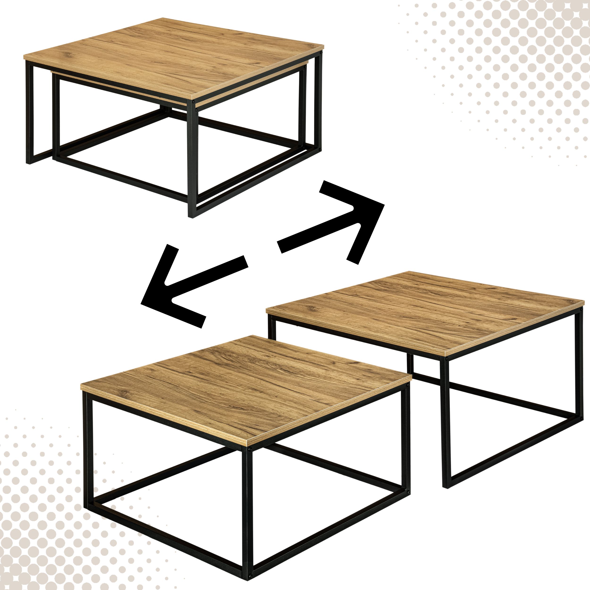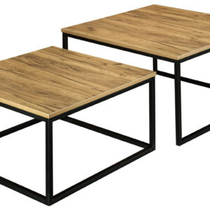 Nadaj swojemu domowi wyjątkowy industrialny akcent dzięki temu designerskiemu zestawowi 2 sztuk stolika. Kwadratowa metalowa rama łączy się z blatem z płyty laminowanej w kolorze craft, co stanowi element dekoracyjny w salonie, korytarzu, biurze i nie tylko. Umieść doniczki, kubki, dekoracje lub czasopisma na stolikach, aby zawsze mieć je pod ręką.