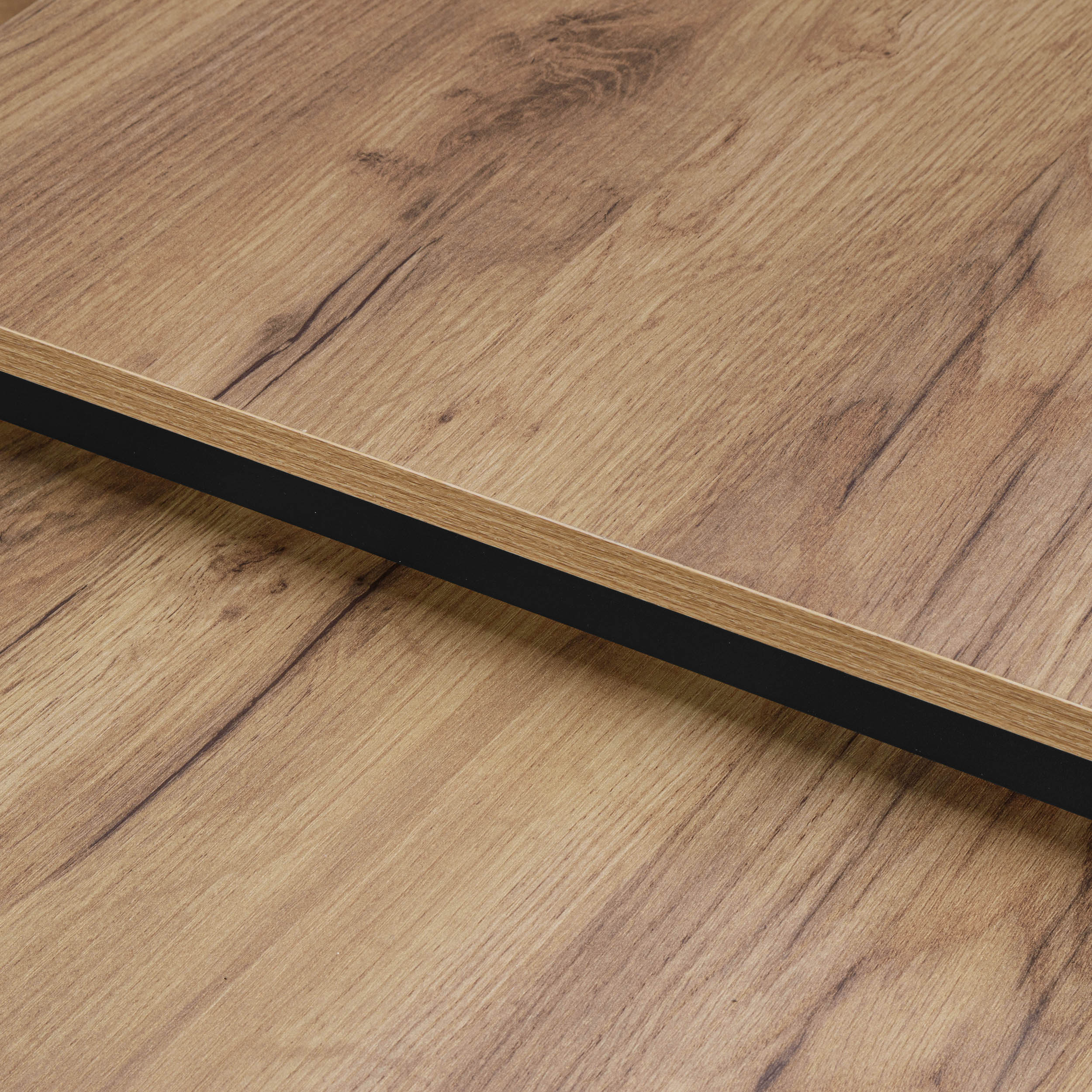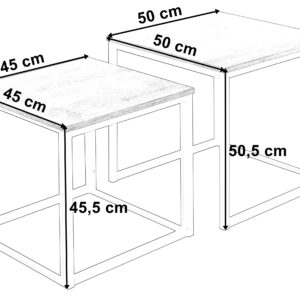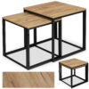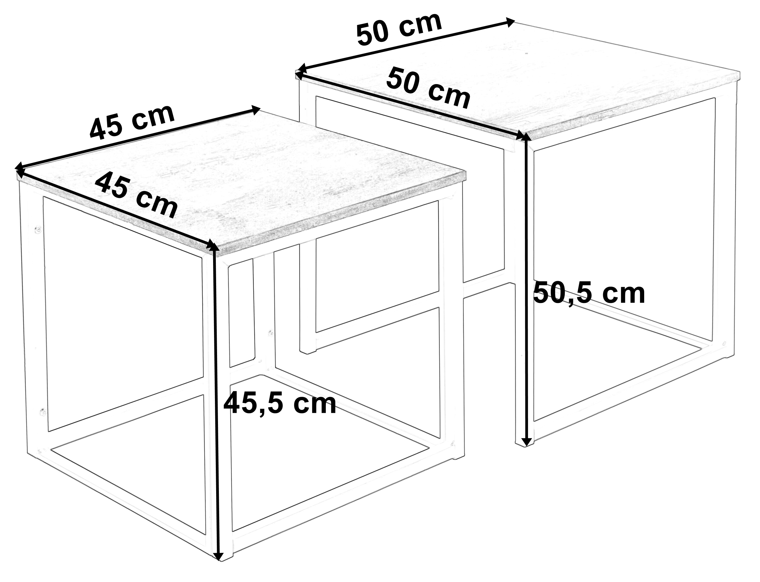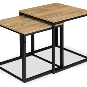 Nadaj swojemu domowi wyjątkowy industrialny akcent dzięki temu designerskiemu zestawowi Praven. Zestaw tworzą dwa eleganckie stoliki. Kwadratowa metalowa rama łączy się z blatem z płyty laminowanej w kolorze dębu craft, co stanowi element dekoracyjny w salonie, korytarzu, biurze i nie tylko. Umieść doniczki, kubki, dekoracje lub czasopisma na stolikach, aby zawsze mieć je pod ręką.
