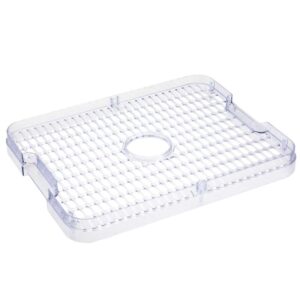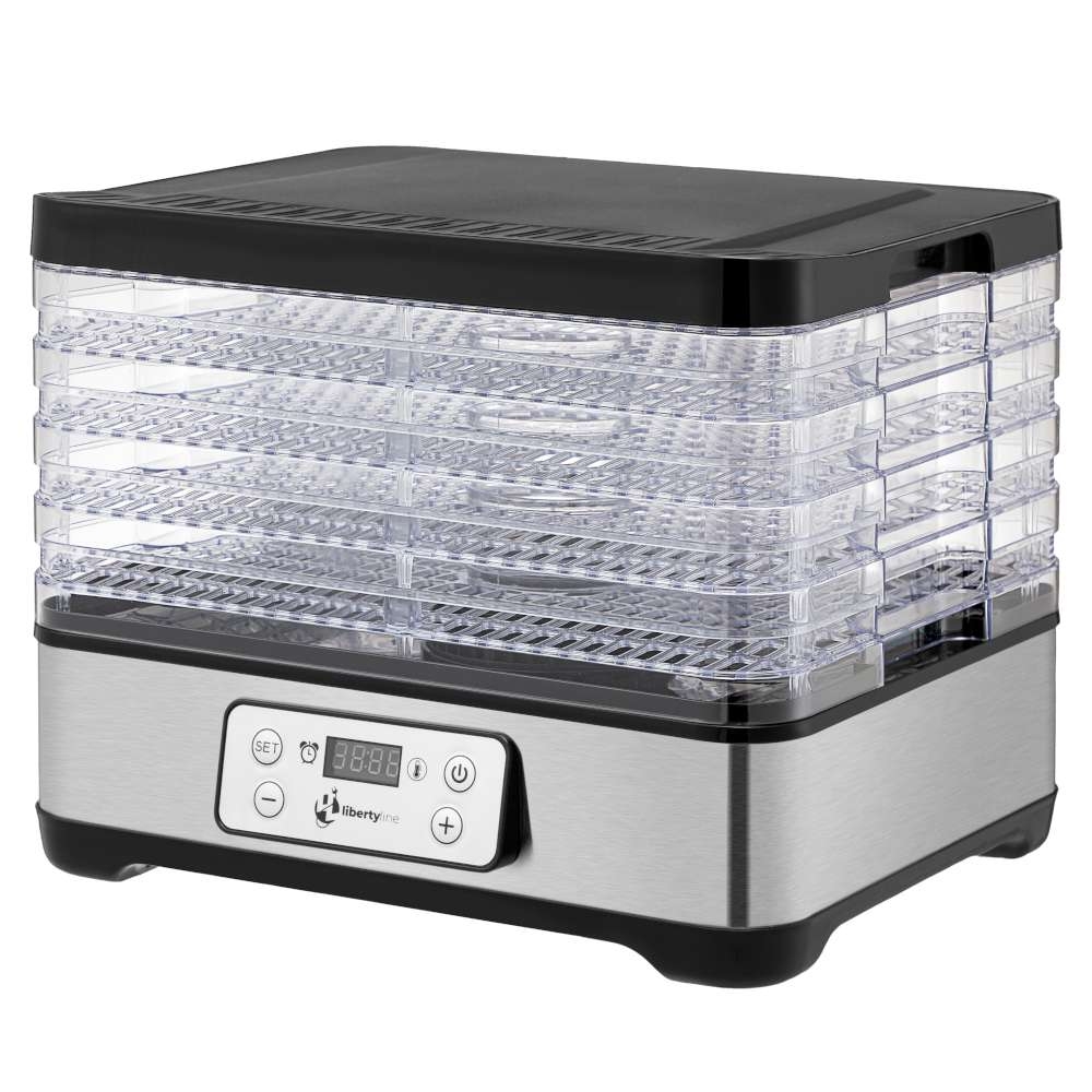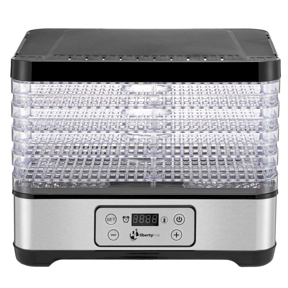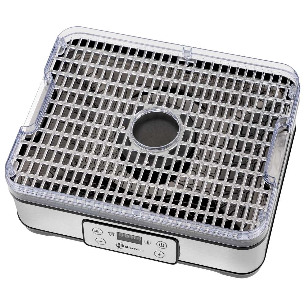 Podstawa suszarki wykonana jest z wytrzymałego polipropylenu (PP), przezroczyste półki z polistyrenu (PS), a zewnętrzna pokrywa ze stali nierdzewnej. Taka kombinacja materiałów zapewnia trwałość oraz elegancki wygląd urządzenia.