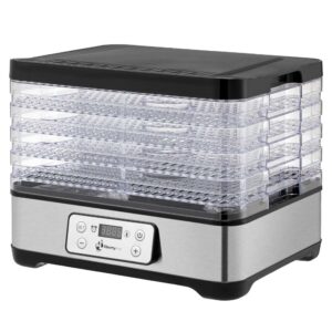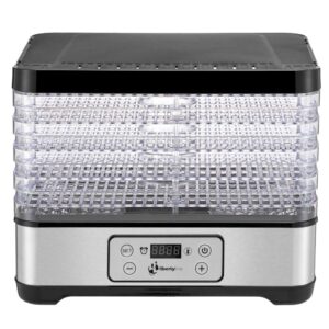 Aż 5 półek o regulowanej wysokości (14-28 mm) umożliwia dostosowanie przestrzeni do suszenia różnych wielkości suszonej żywności. Półki są wolne od szkodliwego Bisfenolu A (BPA).