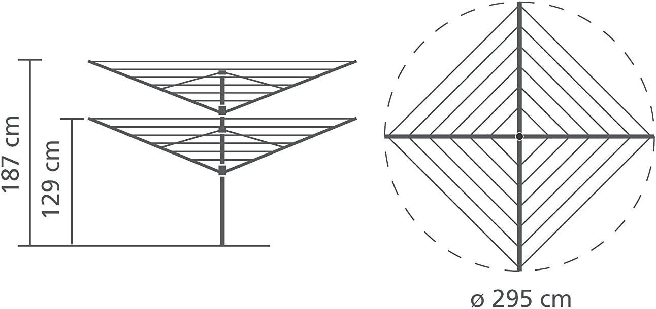 Dołączony wodoodporny pokrowiec skutecznie chroni suszarkę przed deszczem. Pomaga także w wygodnym przechowywaniu poza sezonem, chroniąc przed niekorzystnymi warunkami atmosferycznymi.