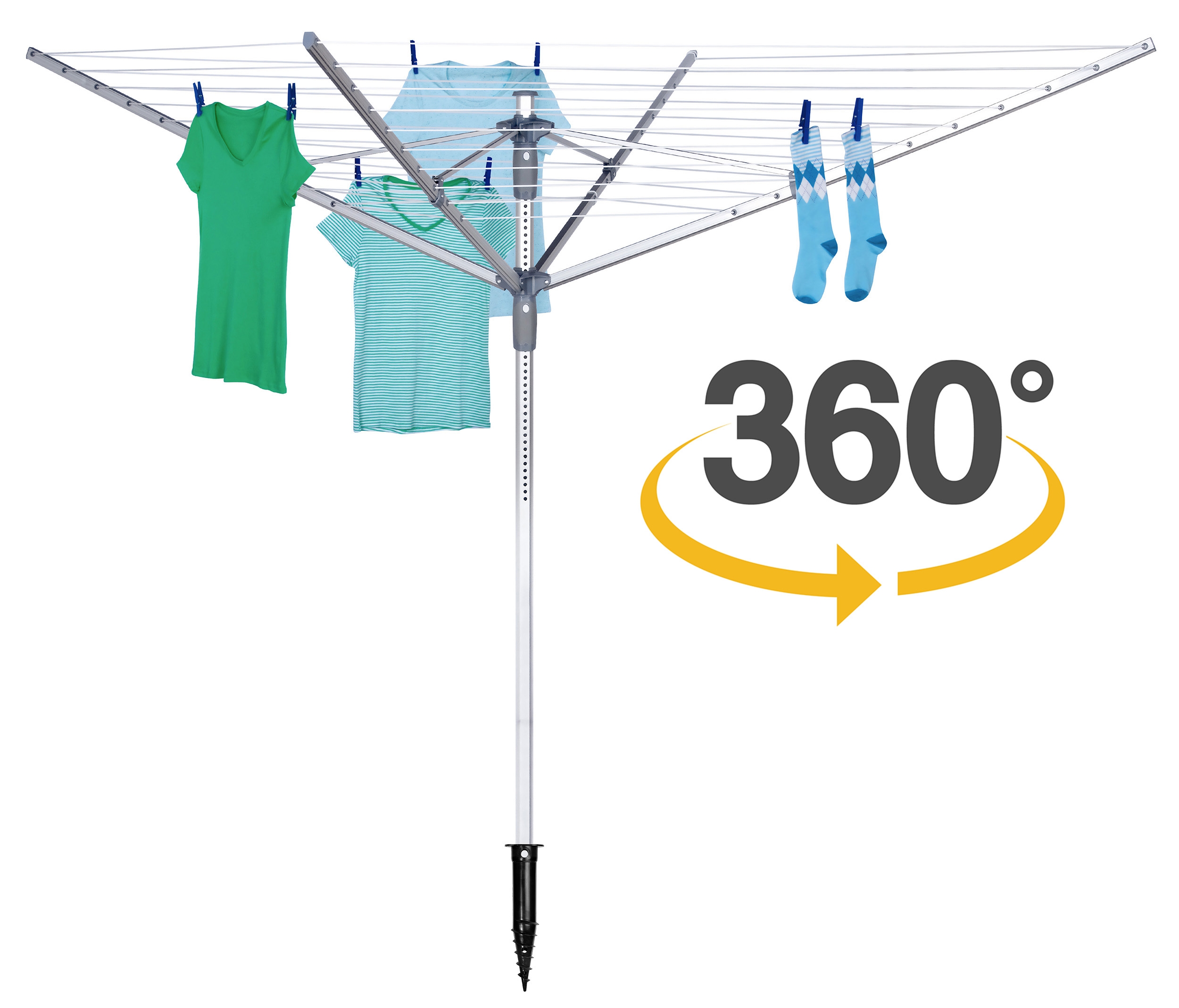 Suszarka zawiera innowacyjny system obrotowy 360°, który umożliwia szybkie rozkładanie i zbieranie prania bez potrzeby przemieszczania się wokół. Regulacja wysokości linek pozwala także na dopasowanie suszarki do indywidualnych preferencji, co podnosi ergonomię użytkowania.