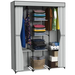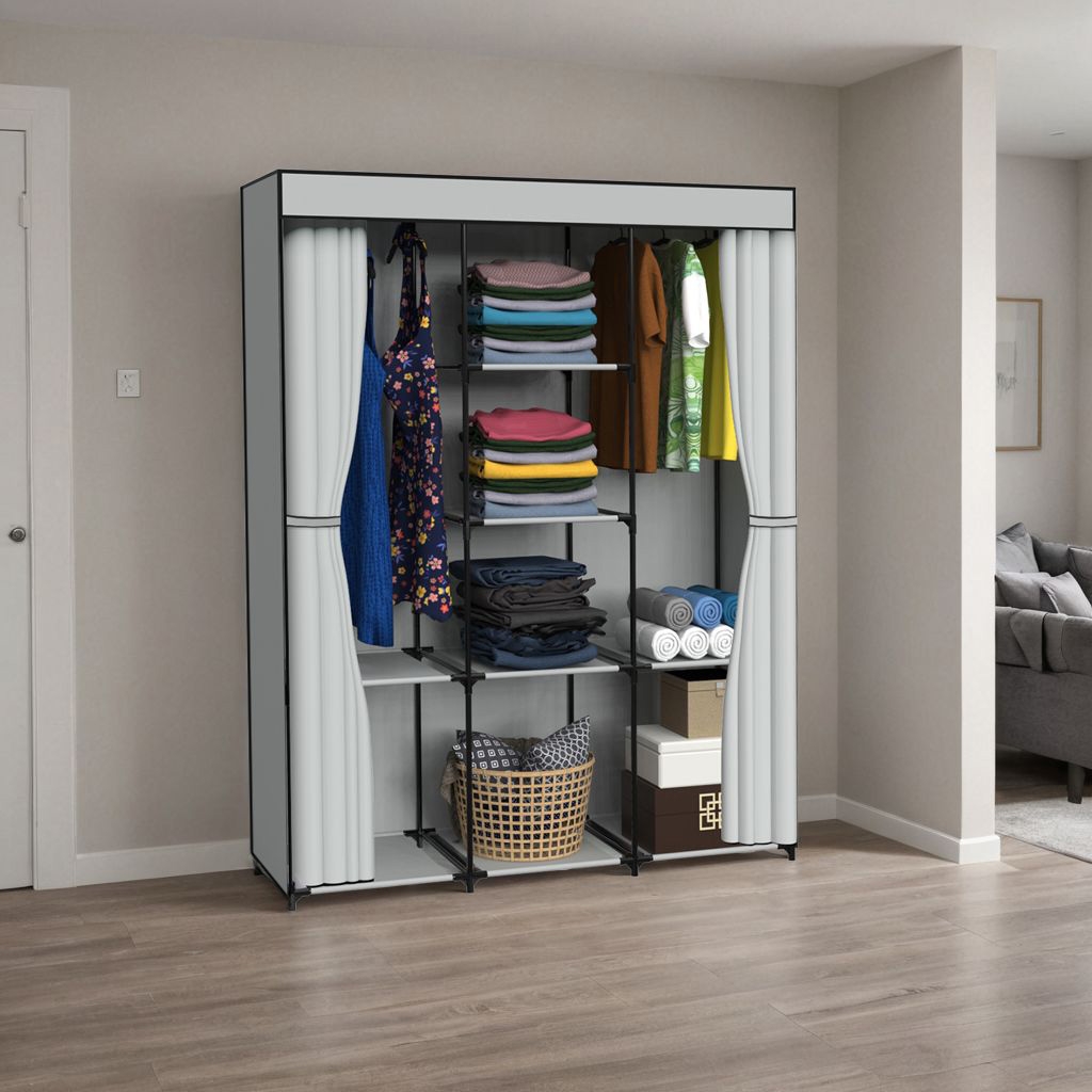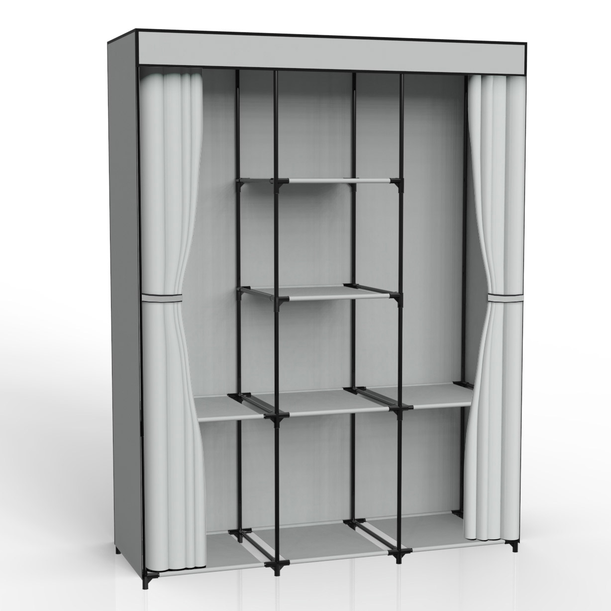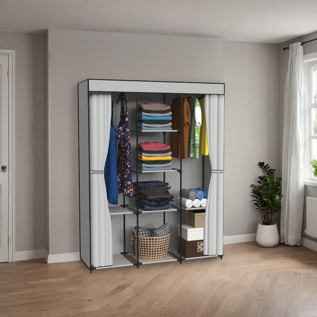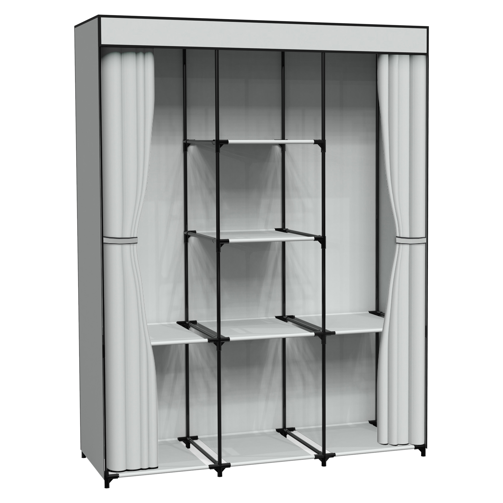 Szafa tekstylna z 8 półkami SONIA z kurtyną szara