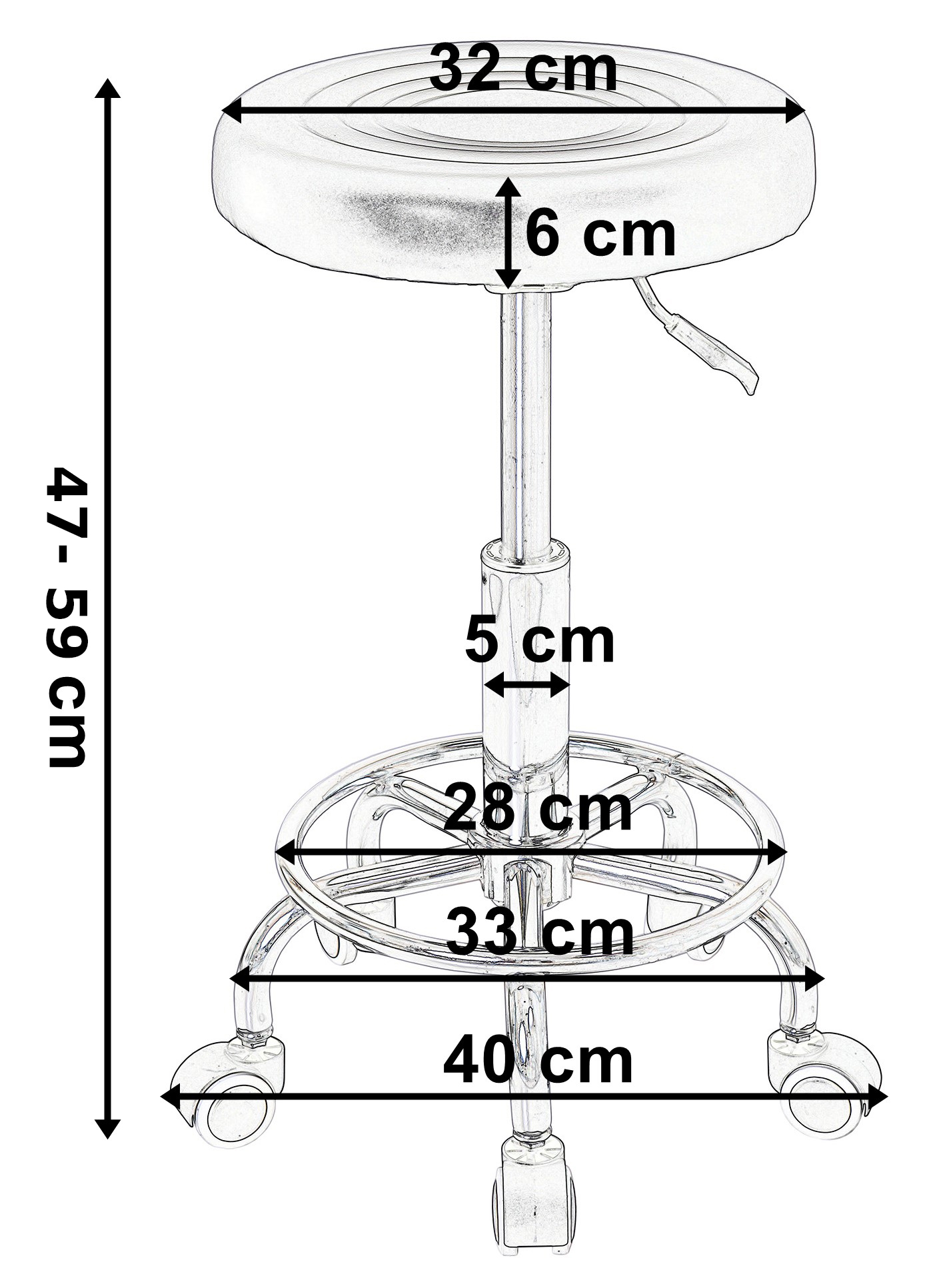 Wysokość siedziska 47 cm – 59 cm