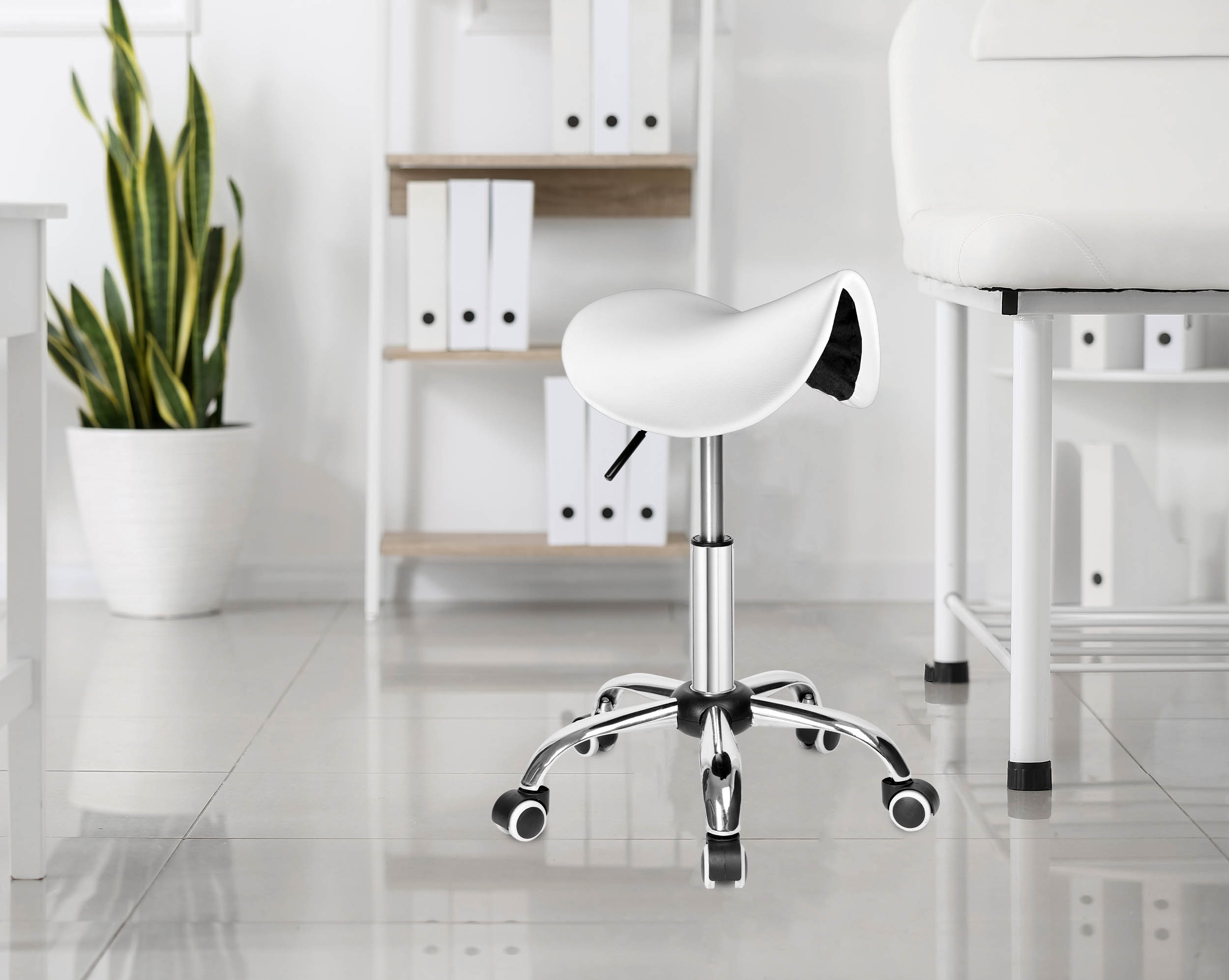 Stołek kosmetyczny Stratum to solidny i praktyczny taboret roboczy z regulacją wysokości. Jest w pełni obrotowy. Ergonomiczne siedzisko wykonane z miękkiej ekoskóry zapewnia komfort pracy nawet przy długotrwałym użytkowaniu. Chromowane elementy i solidna pięcioramienna podstawa zapewniają trwałość i stabilność, niska waga i gumowe kółka ułatwiają przemieszczanie się po pomieszczeniu. Idealny dla salonów kosmetycznych i fryzjerskich, które cenią sobie styl i praktyczność. Kupując u nas, kupujesz od producenta!