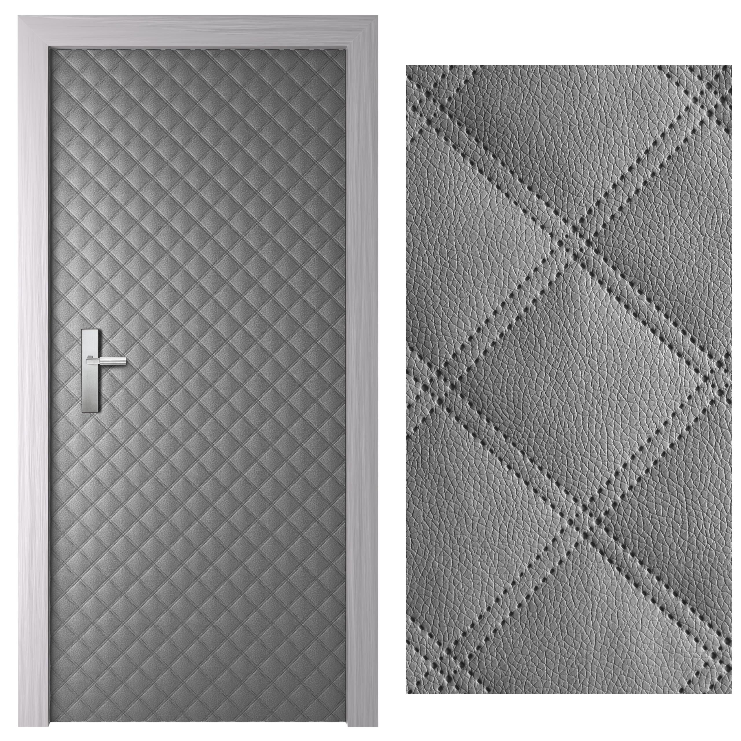 Tapicerka drzwiowa Sonic została wykonana z ekoskóry pikowanej ultradźwiękowo (bezniciowo) z głębokim efektem pikowania 3D na wzór karo 6 x 6 cm oraz została podbita ocieplaczem tapicerskim. Stworzona z dbałością o najmniejsze detale. Przykuwa uwagę ciekawym wzornictwem i kolorystyką. W szybki sposób odnowisz swoje stare drzwi i nadasz im nowoczesny wygląd. Tapicerka jest do samodzielnego przycięcia i montażu. Przeznaczona do montażu wewnętrznego.