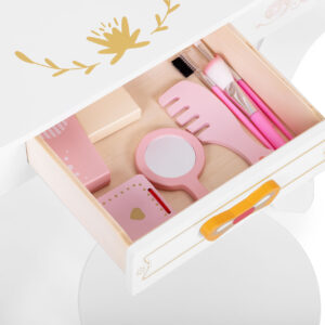 Toaletka posiada dużą, wysuwaną szufladę, w której pomieszczą się wszystkie akcesoria potrzebne do codziennego makijażu.
