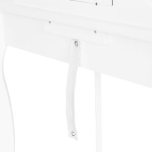 Toaletka posiada również praktyczną szufladę, w której dziecko może przechowywać swoje skarby, biżuterię, czy też akcesoria do zabawy. Szuflada została zaprojektowana tak, aby można było łatwo ją otworzyć i zamknąć, umożliwiając dziecku samodzielne organizowanie swojego małego świata.