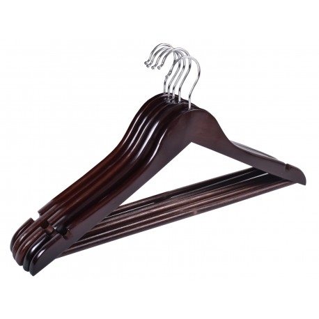 Wieszak Rondo wykonano z wysokiej jakości drewna. Został starannie wykończony i zabezpieczony farbą, dzięki czemu będzie doskonale prezentował się także w eleganckich butikach z luksusową odzieżą. W domowym zaciszu zadba o to, by Twoje ubrania nie zsuwały się, posiada bowiem specjalne wcięcia na ramionach. Dodatkowa poprzeczka pozwoli zawiesić dodatkowe elementy garderoby i zapobiegnie ich zagnieceniu. Hak wieszaka wykonano ze stali nierdzewnej, co znacząco wyróżnia go pod względem trwałości na tle konkurencji.