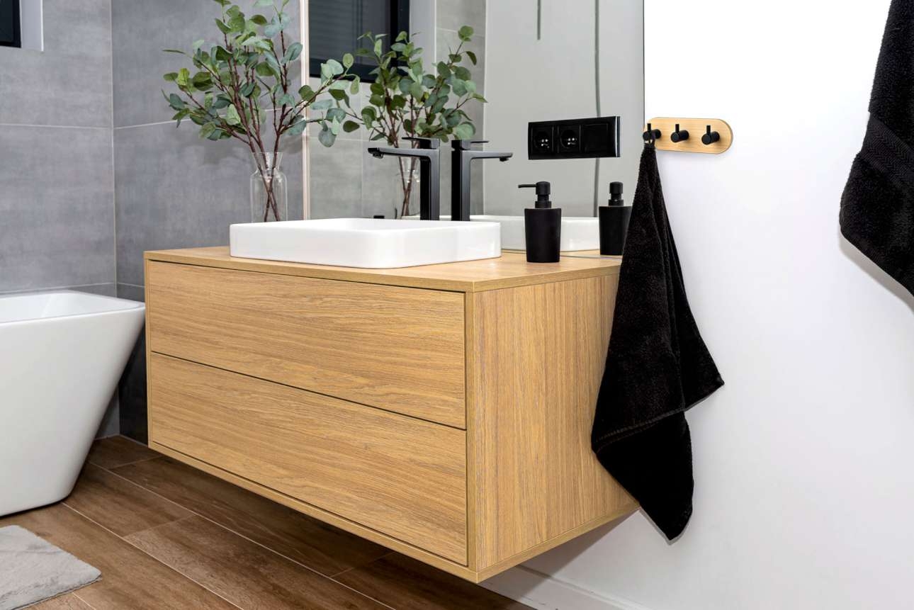 Przeznaczenie: biuro, łazienka | Kolory: czarny mat, naturalny bambus